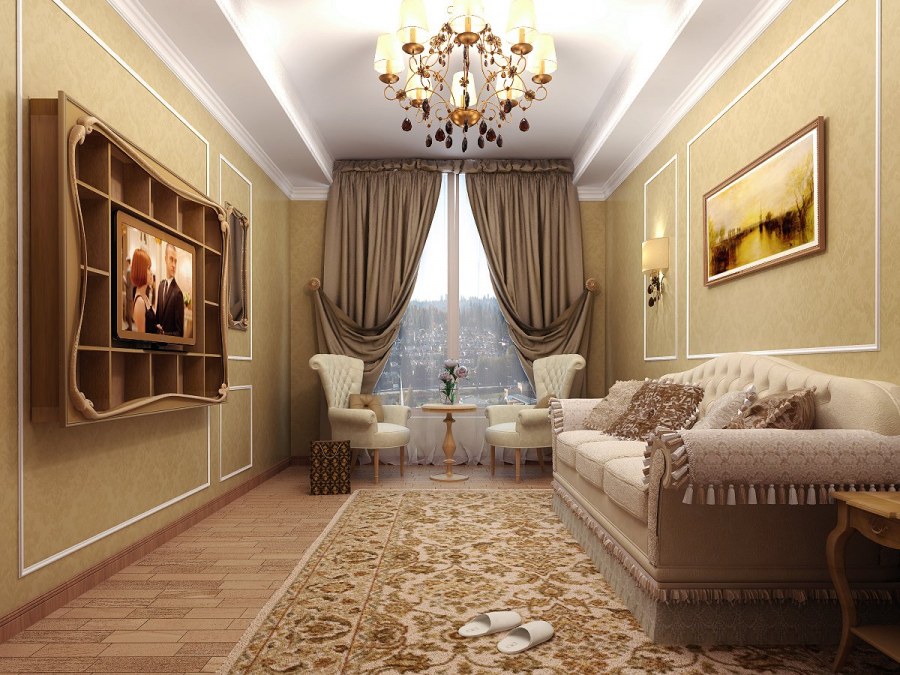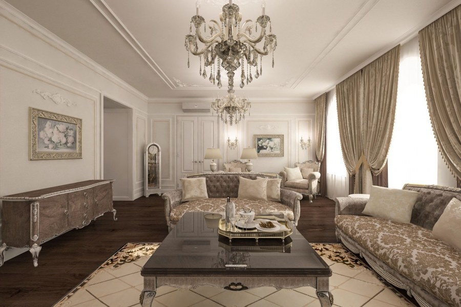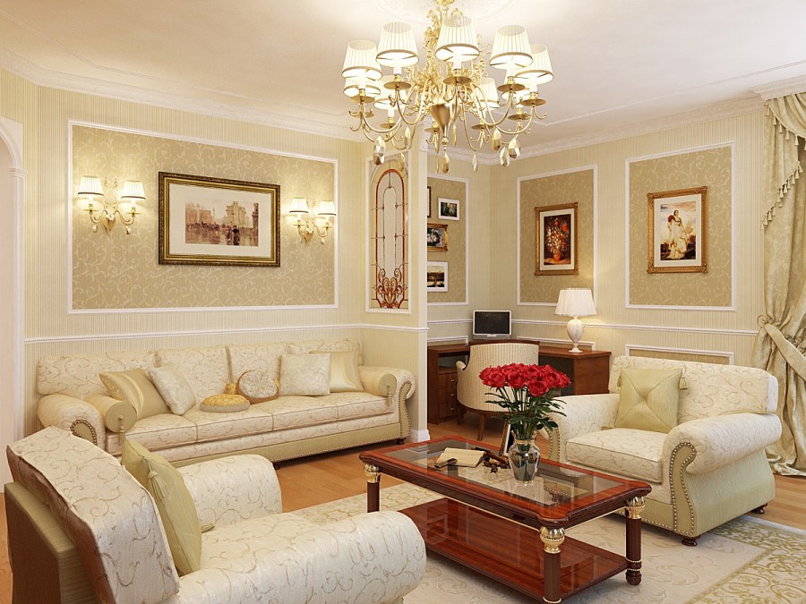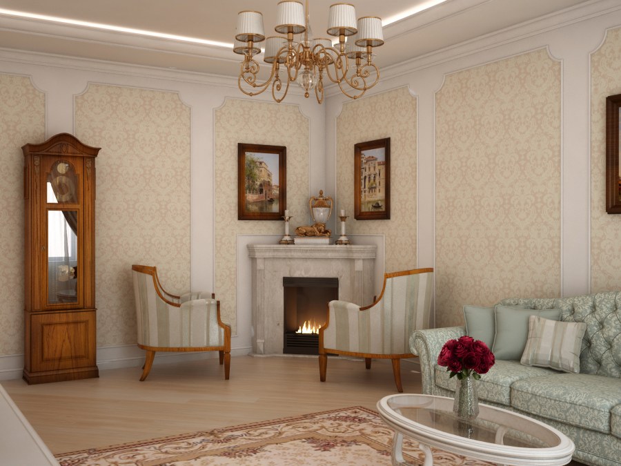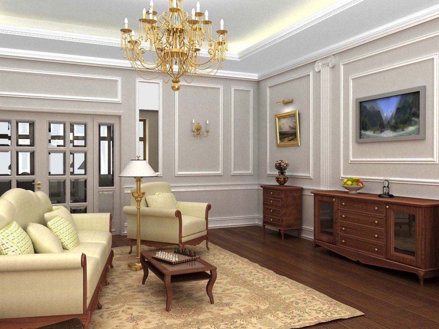Отделка гостиной классика