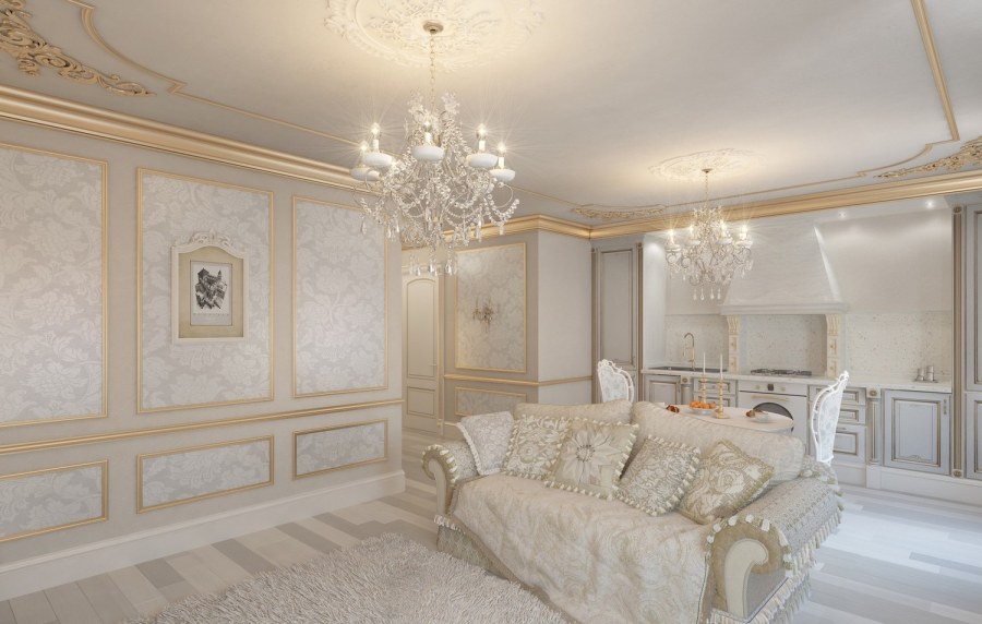Красивая квартира в бело-золотых тонах