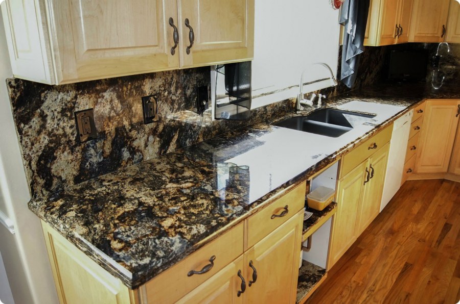 Столешница гранатовый опал в интерьере кухни (71 фото)