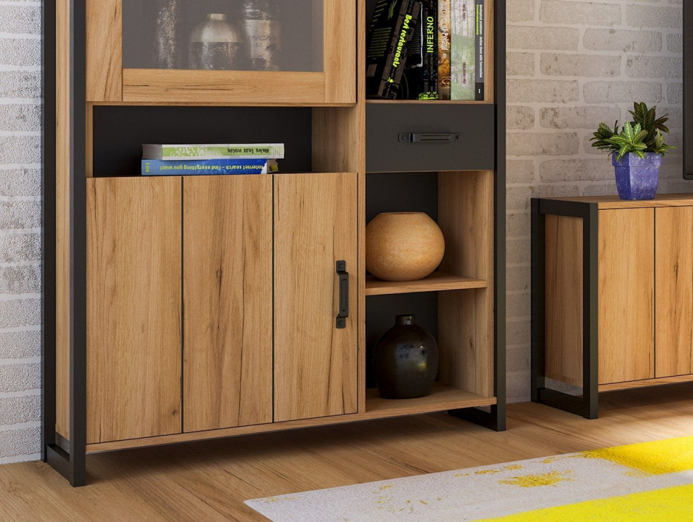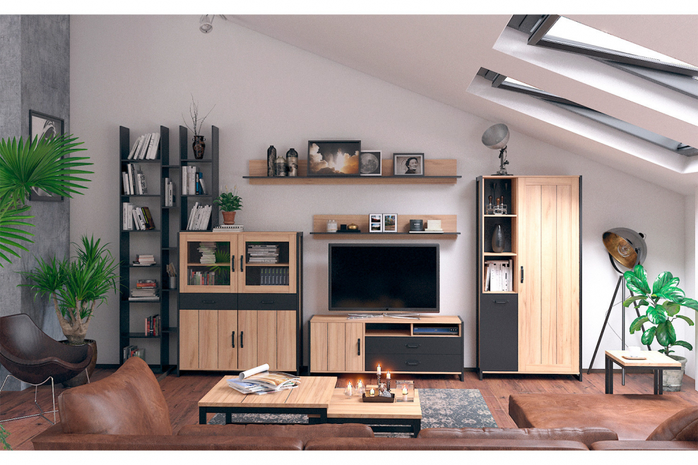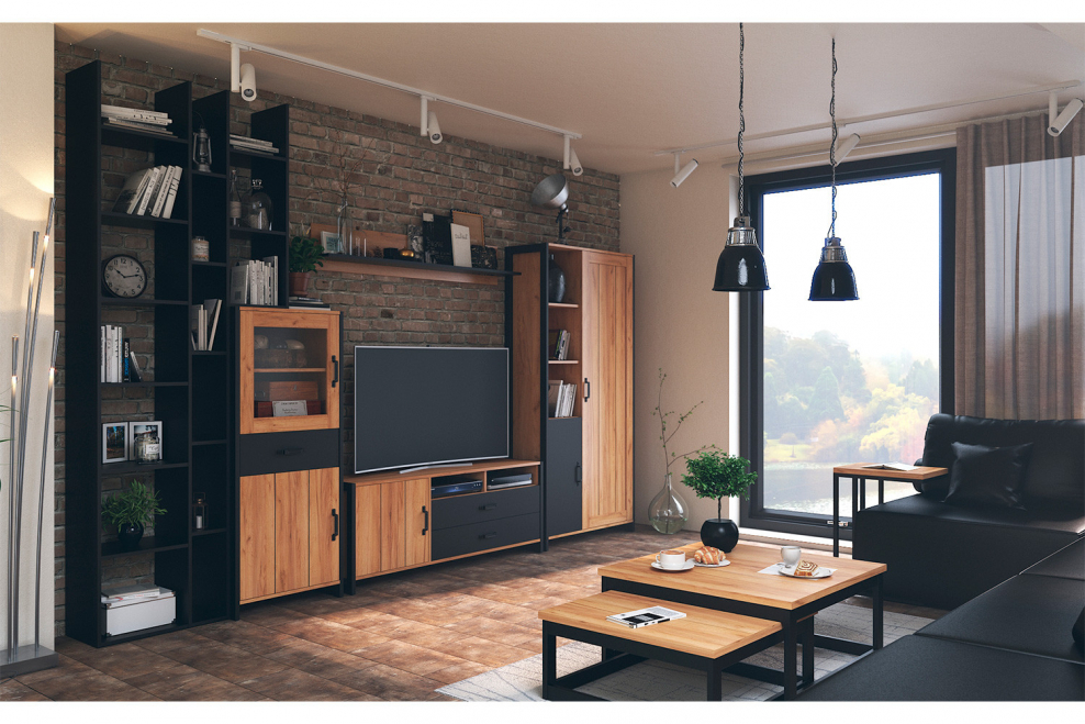 Стенка для гостиной №1 Техно (чёрный/дуб золотой)
