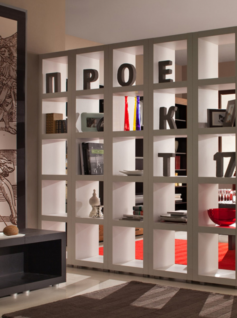 Стеллаж в интерьере