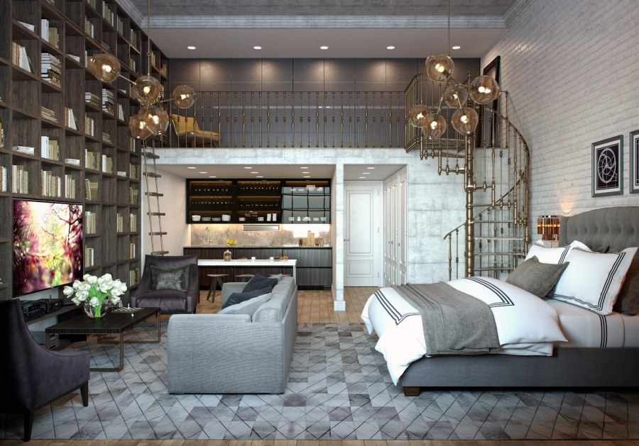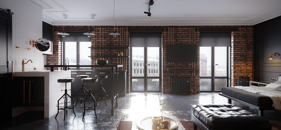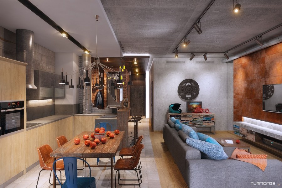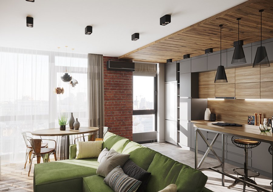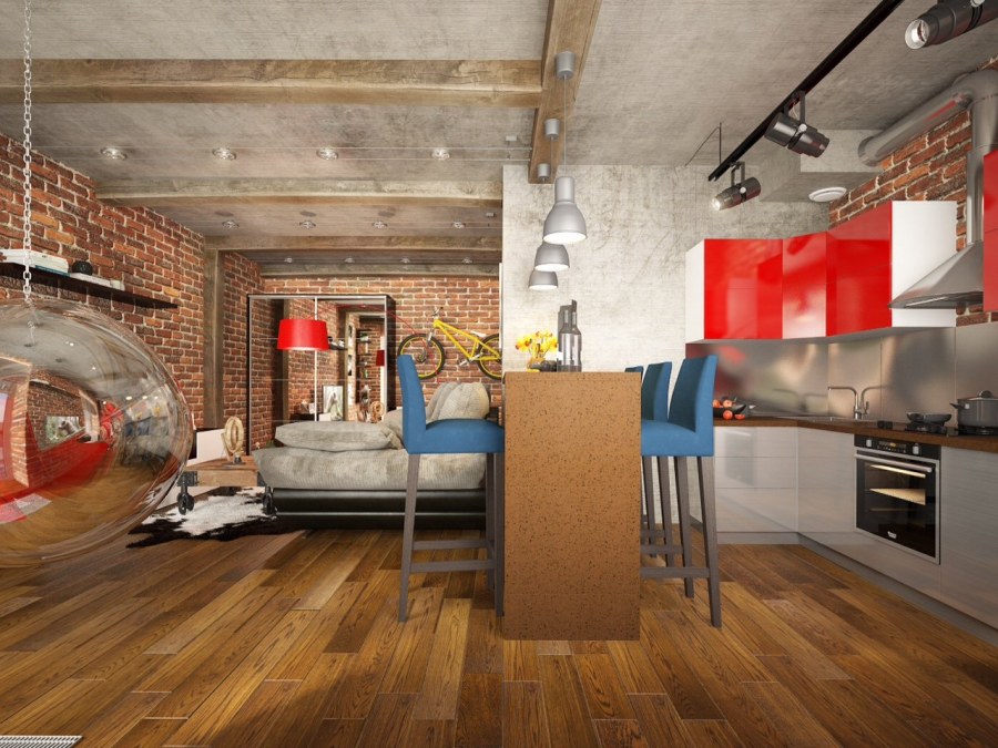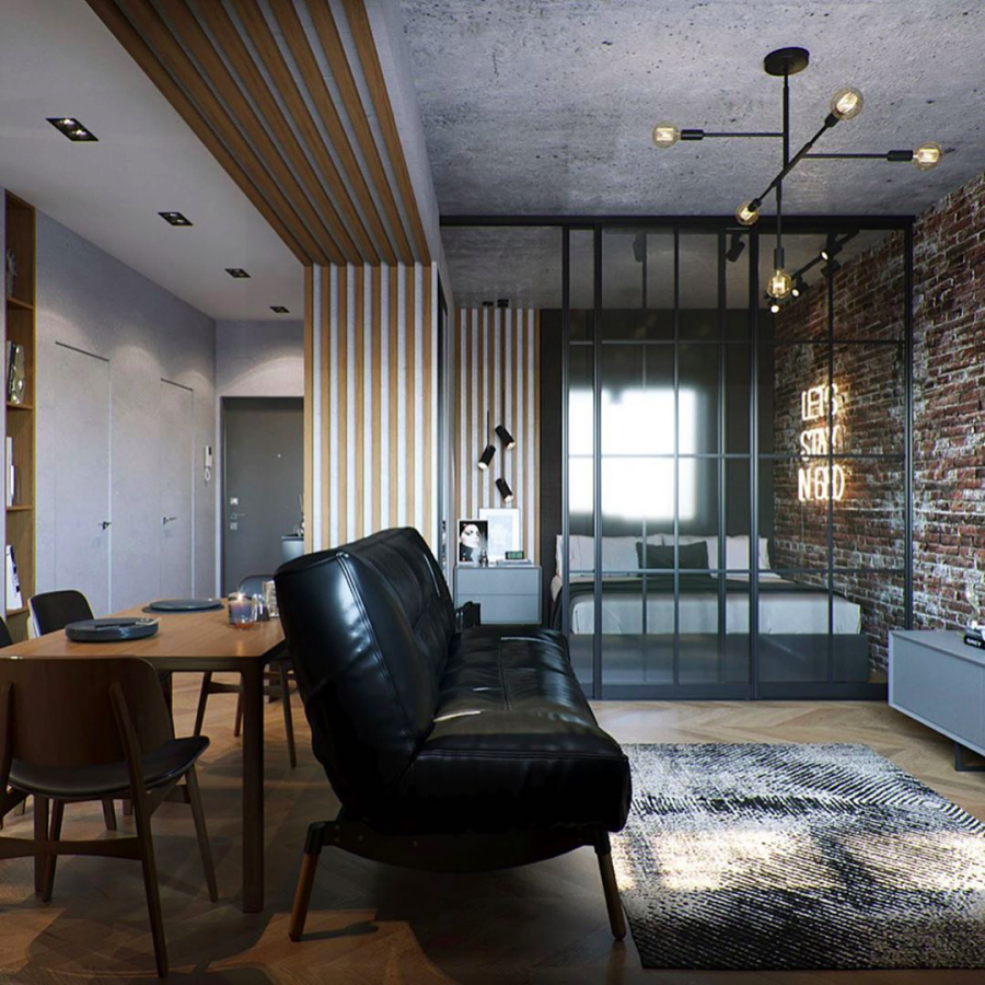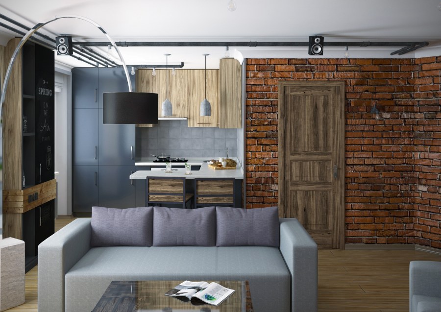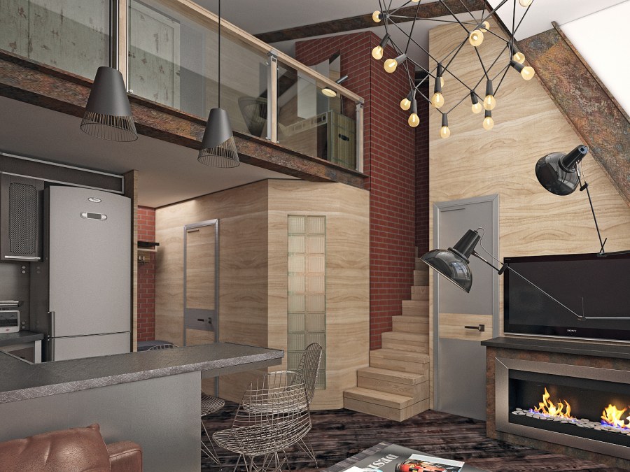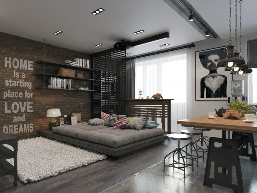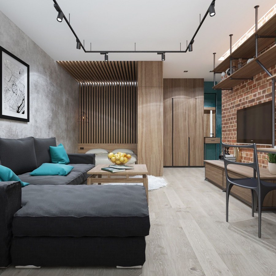 Маленькая гостиная в стиле лофт для маленькой квартиры