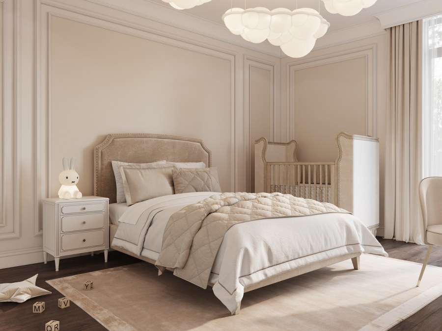 Бежевые кровати в классическом интерьере