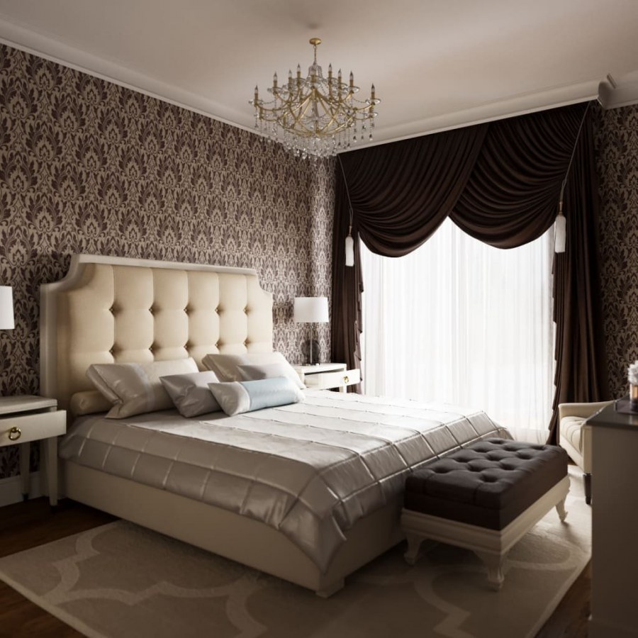 Дизайн проект 3д визуализации классической спальной комнаты