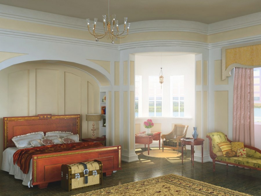 Карнизы в спальню в неоклассическом стиле