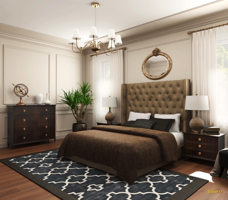 Спальня в классическом стиле коричневых тонов
