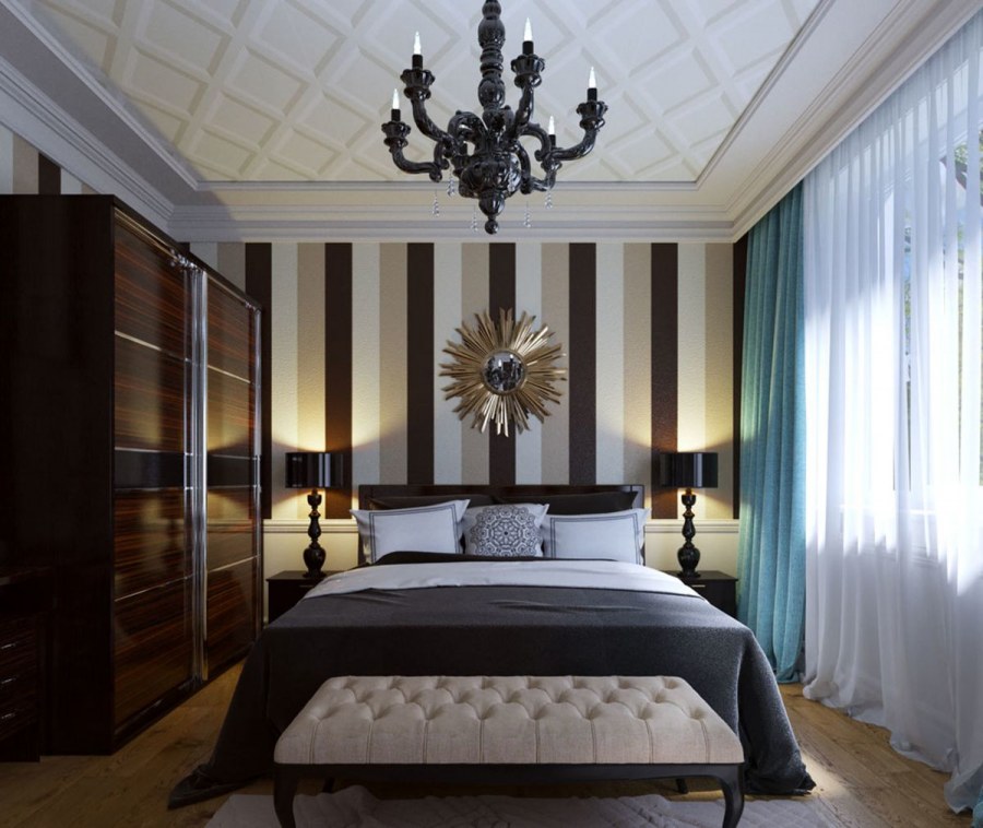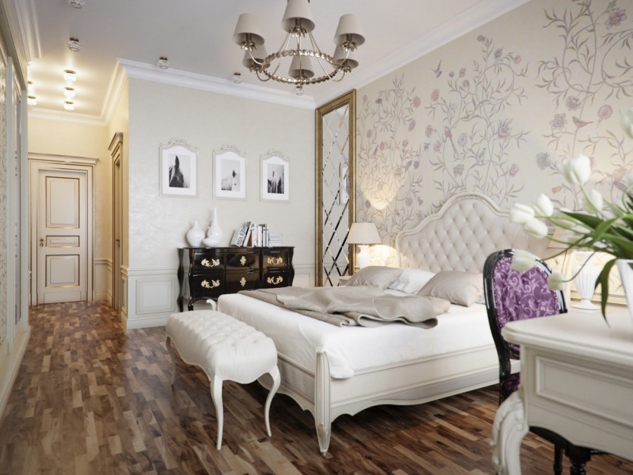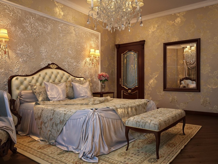 Интерьеры спален в классическом стиле с обоями