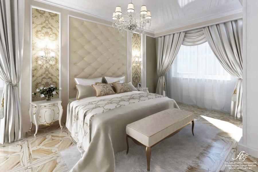 Классическая спальня в светлых тонах