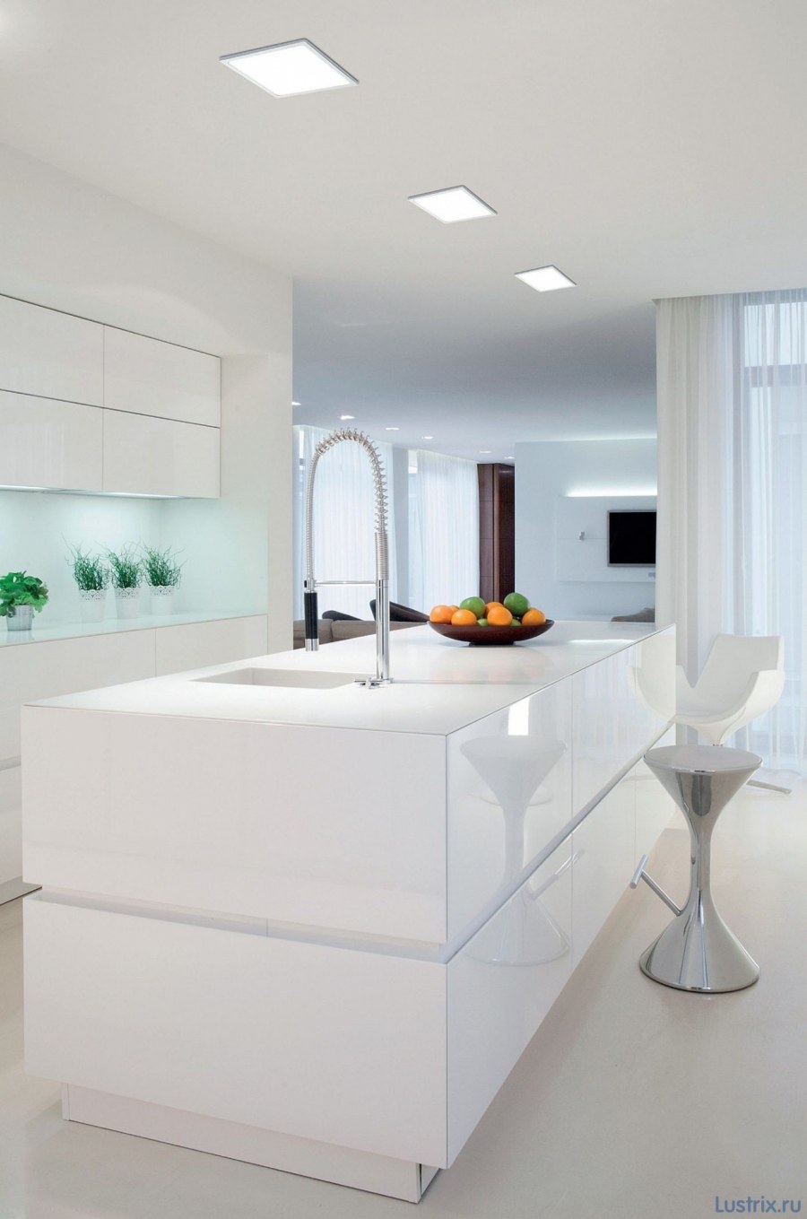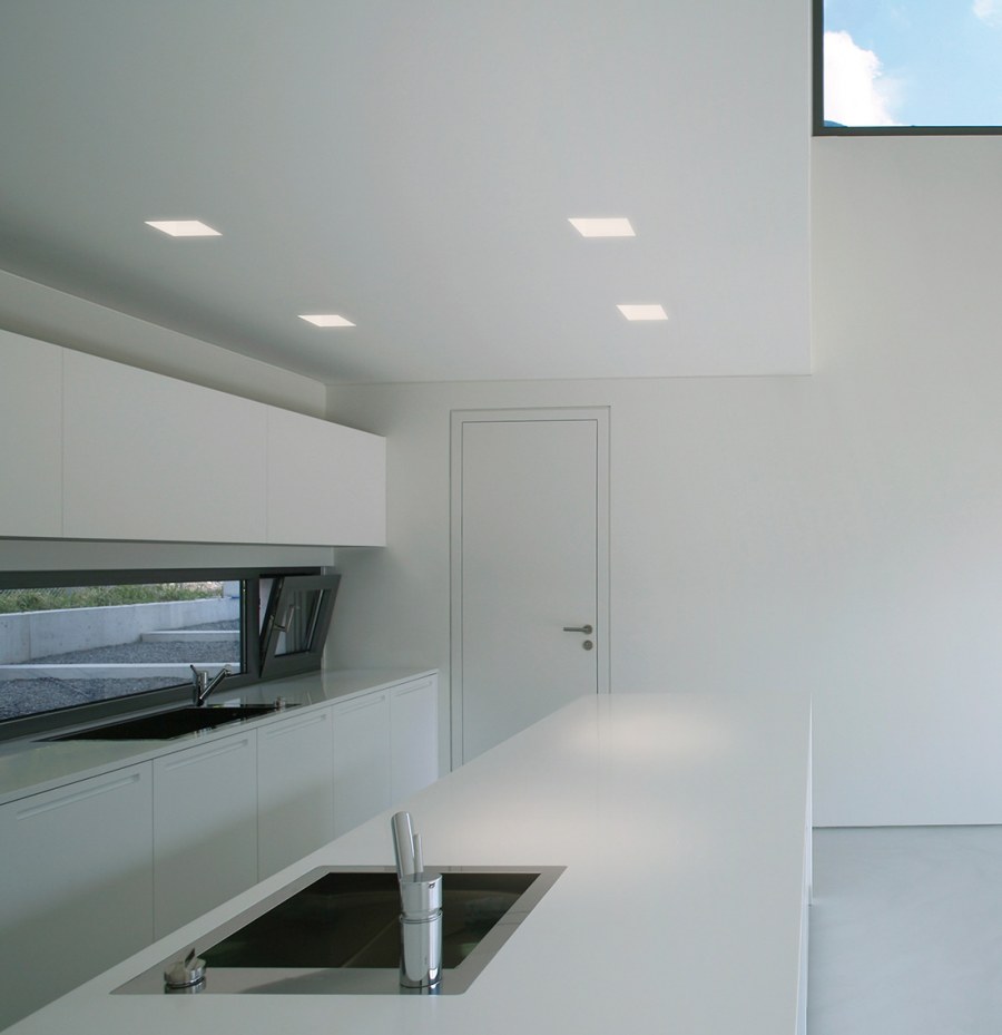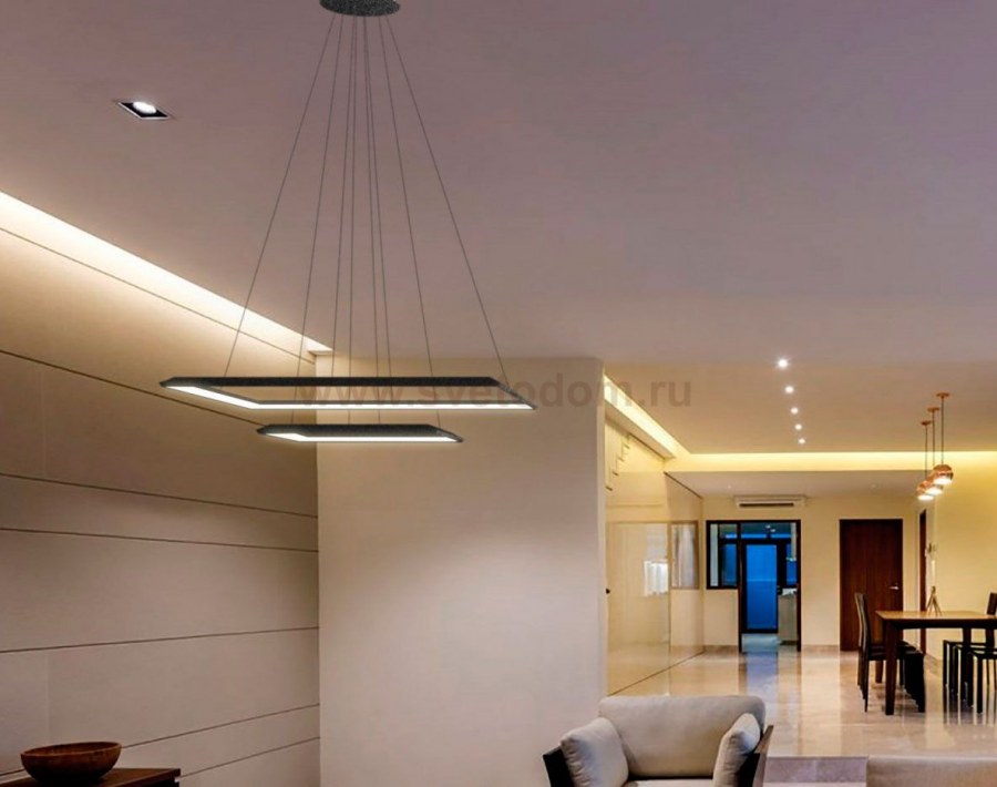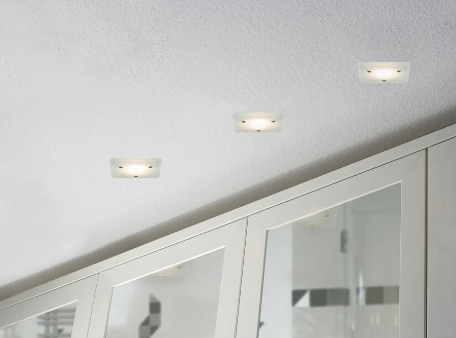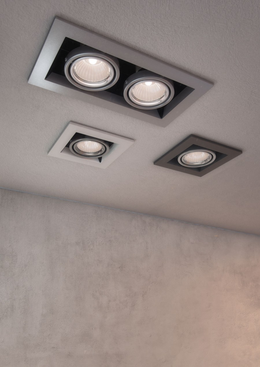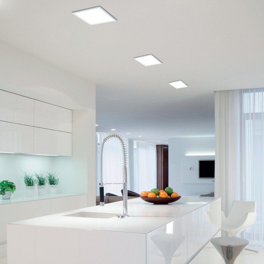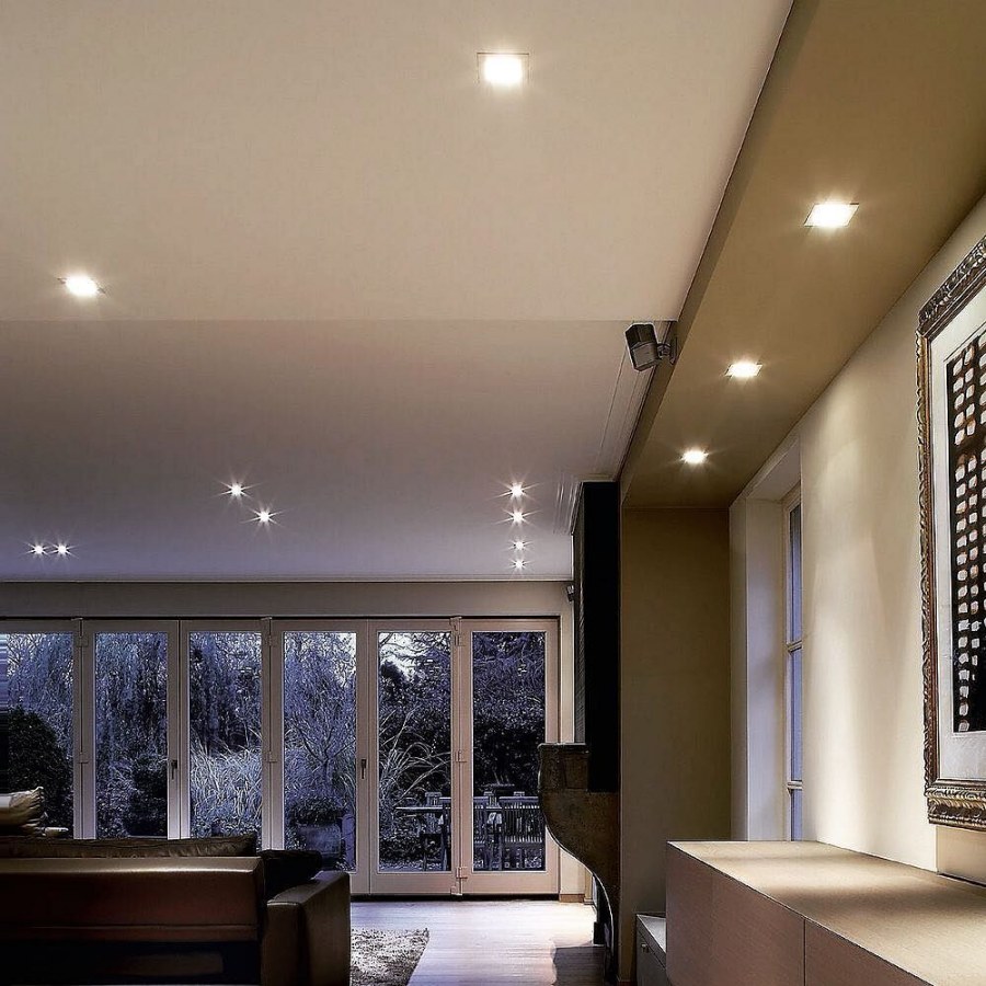 Квадратные встроенные светильники на натяжной потолок в интерьере (52 фото)
