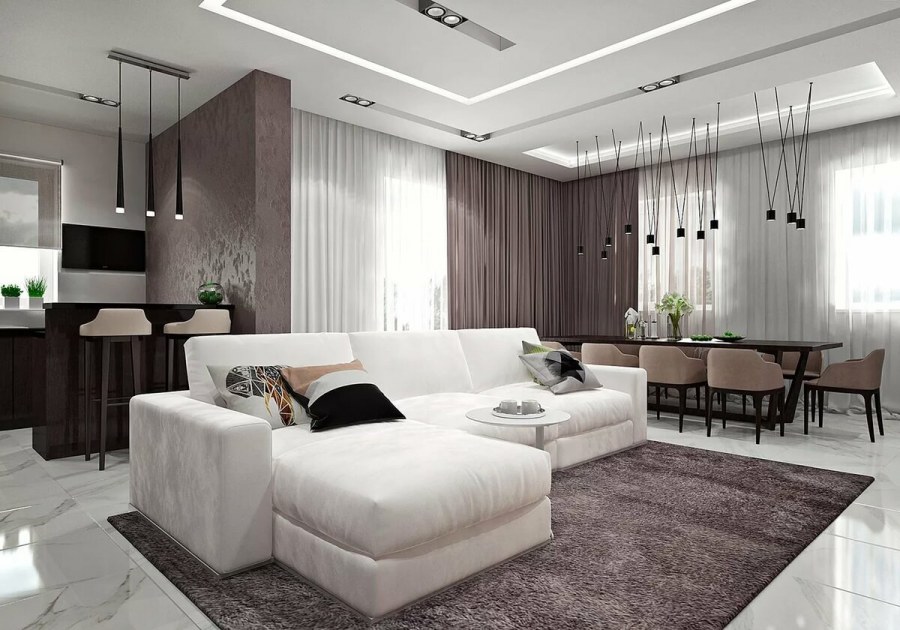 Готовый дизайн проект трехкомнатной квартиры в стиле модерн (74 фото)