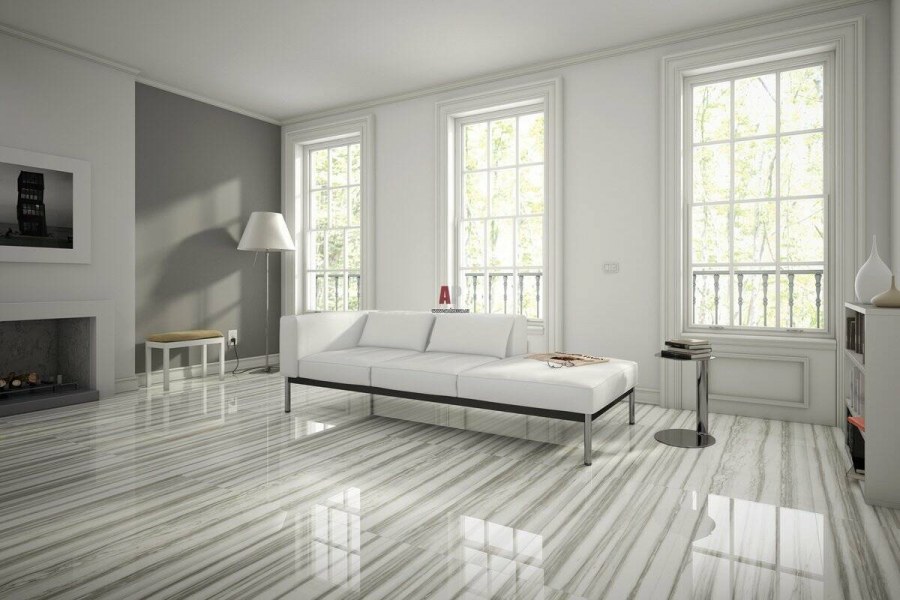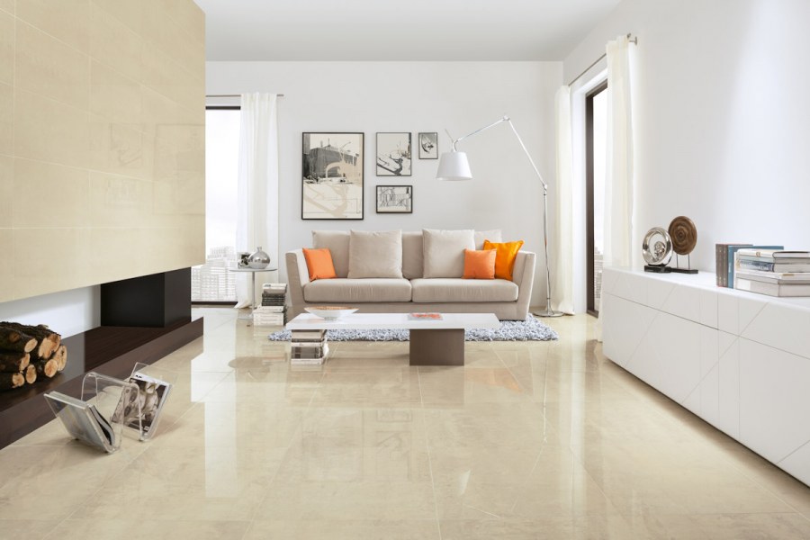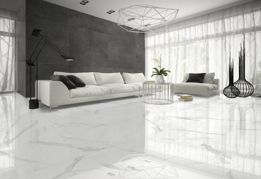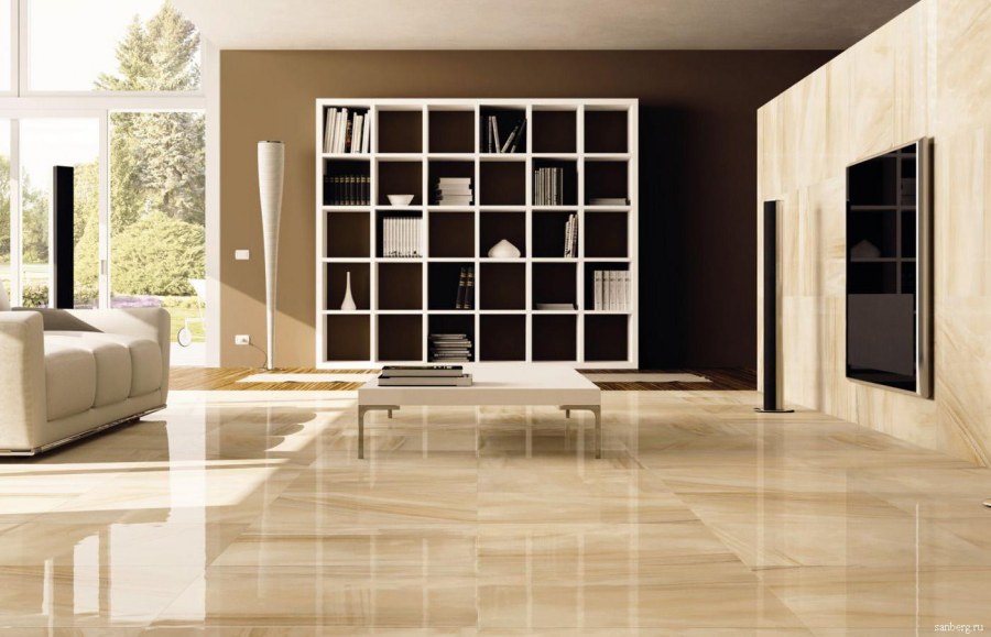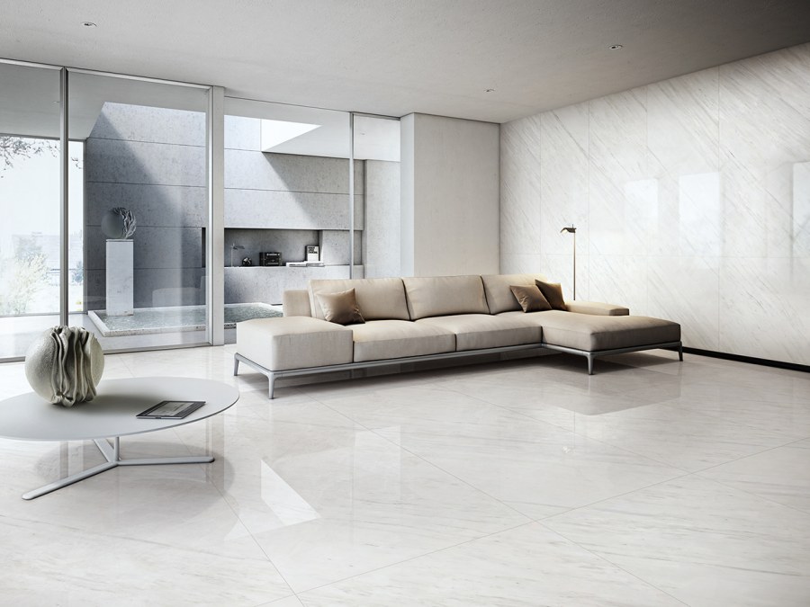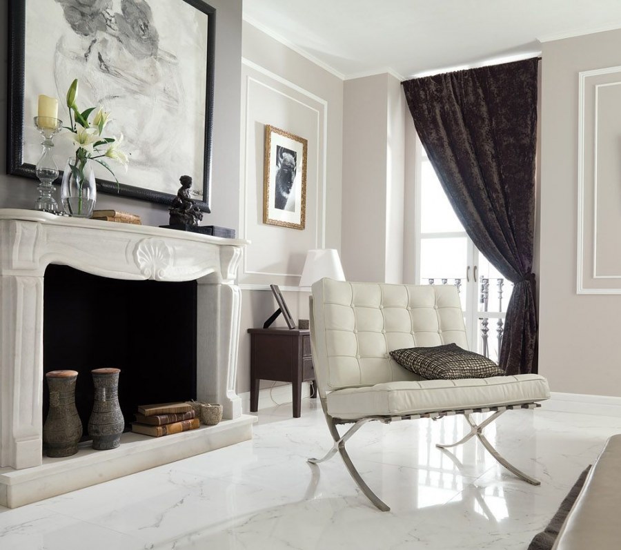 Глянцевая белая плитка в гостиной в интерьере (73 фото)