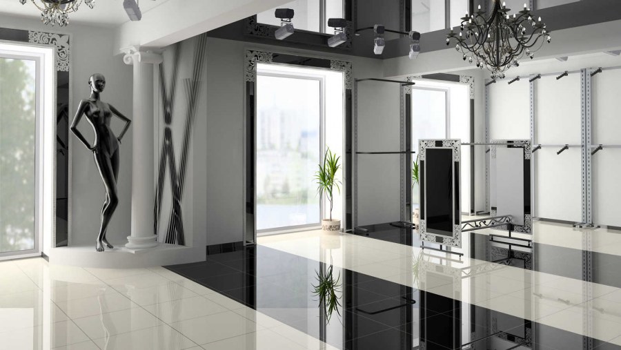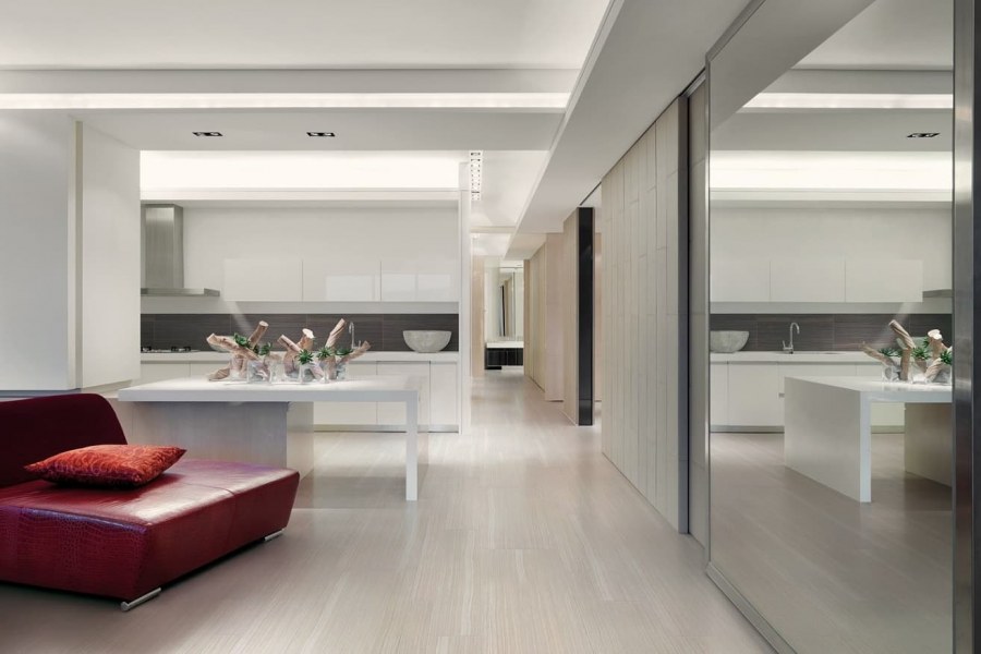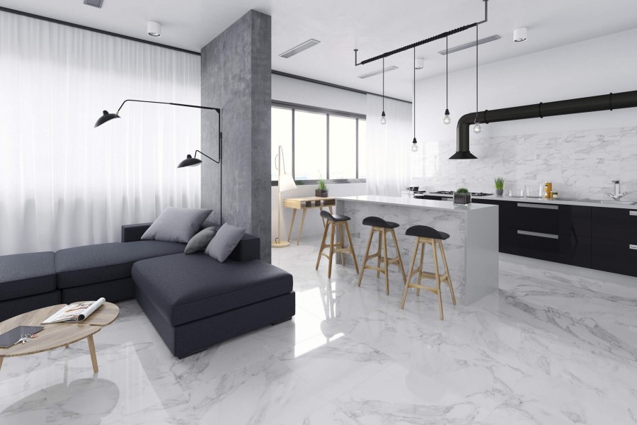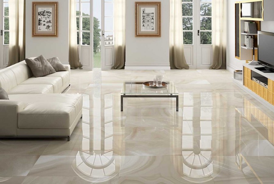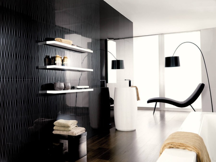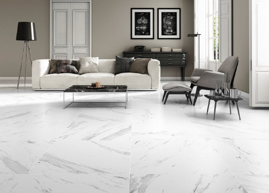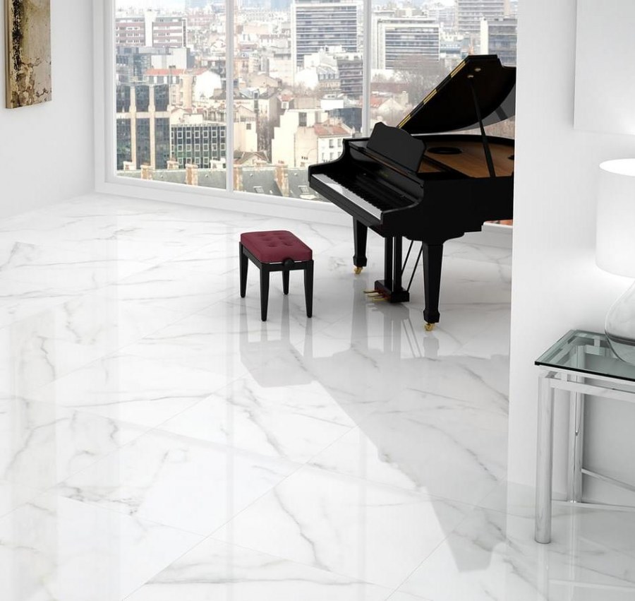 Глянцевая белая плитка в гостиной в интерьере (73 фото)