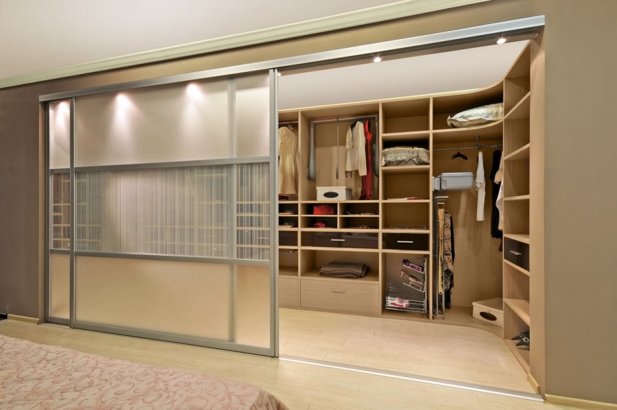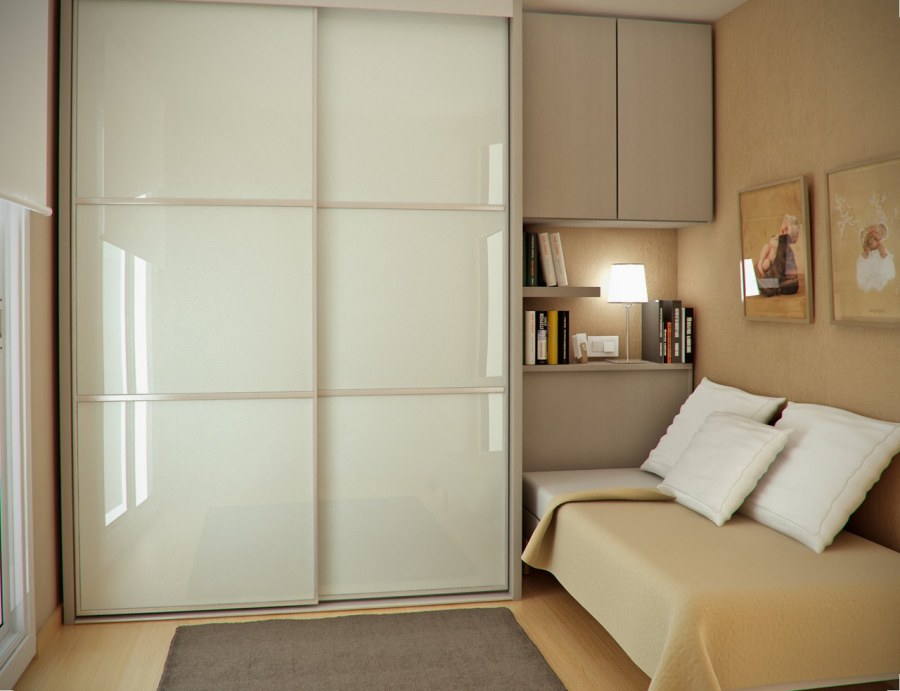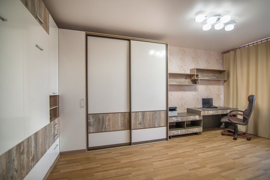 Потолок со встроенным шкафом купе в комнате девочки подростка