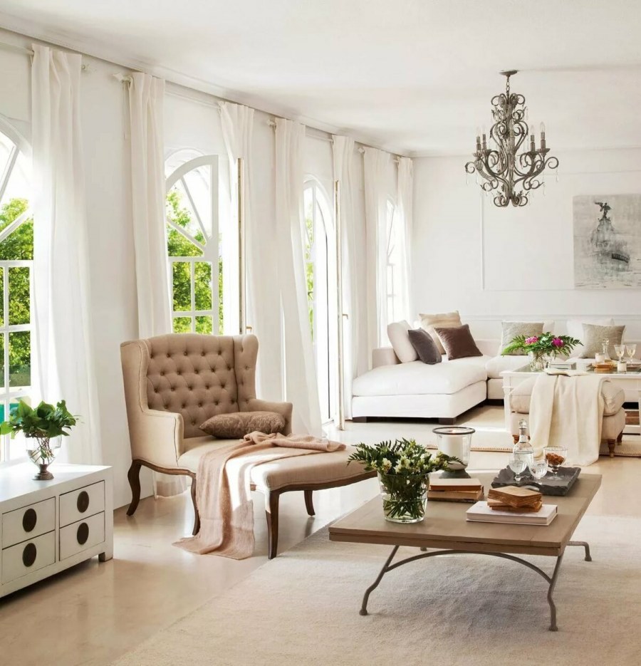Цвет слоновой кости в интерьере гостиной