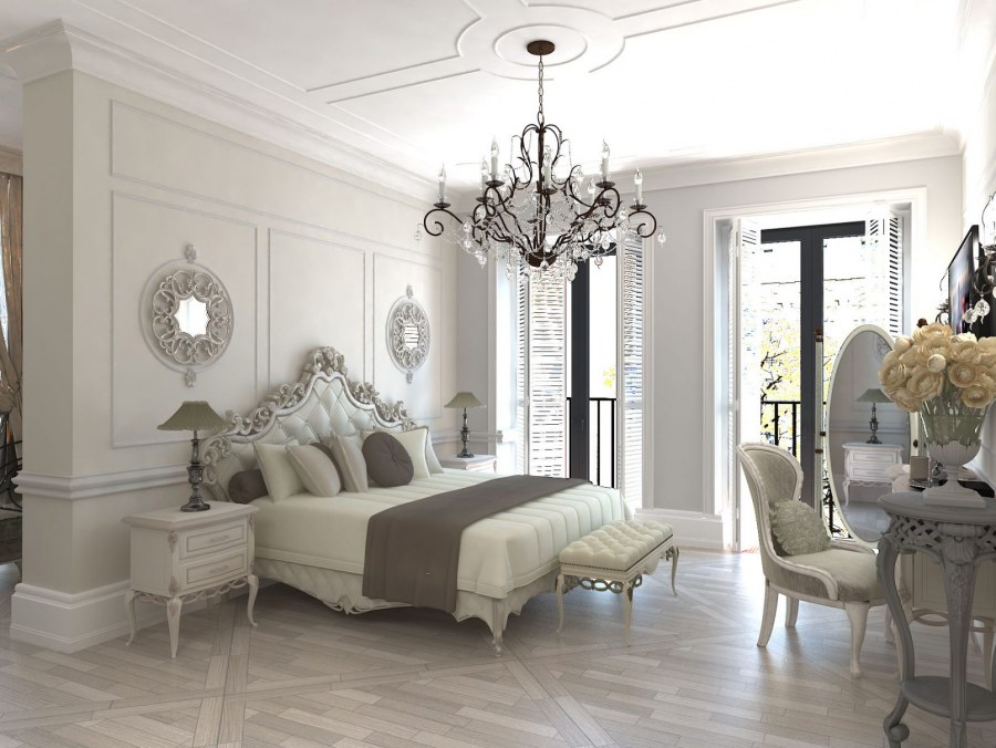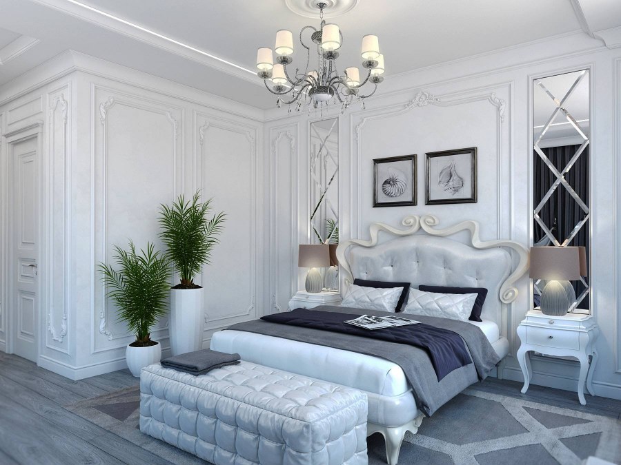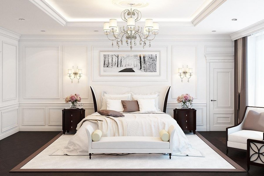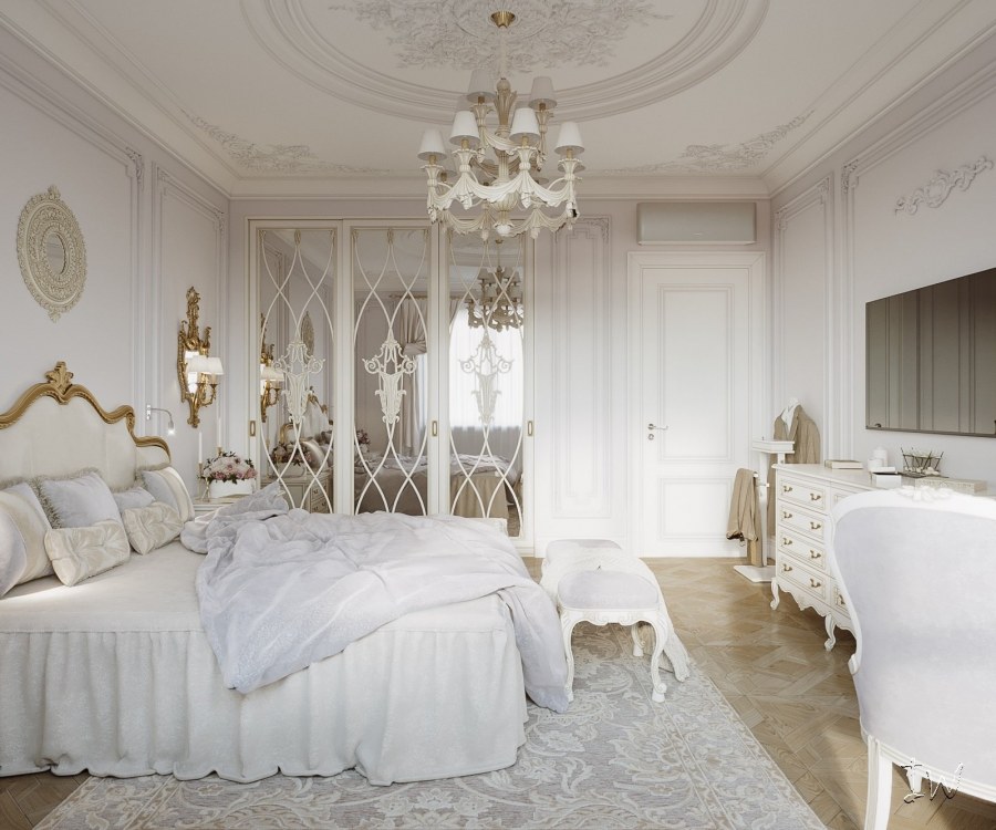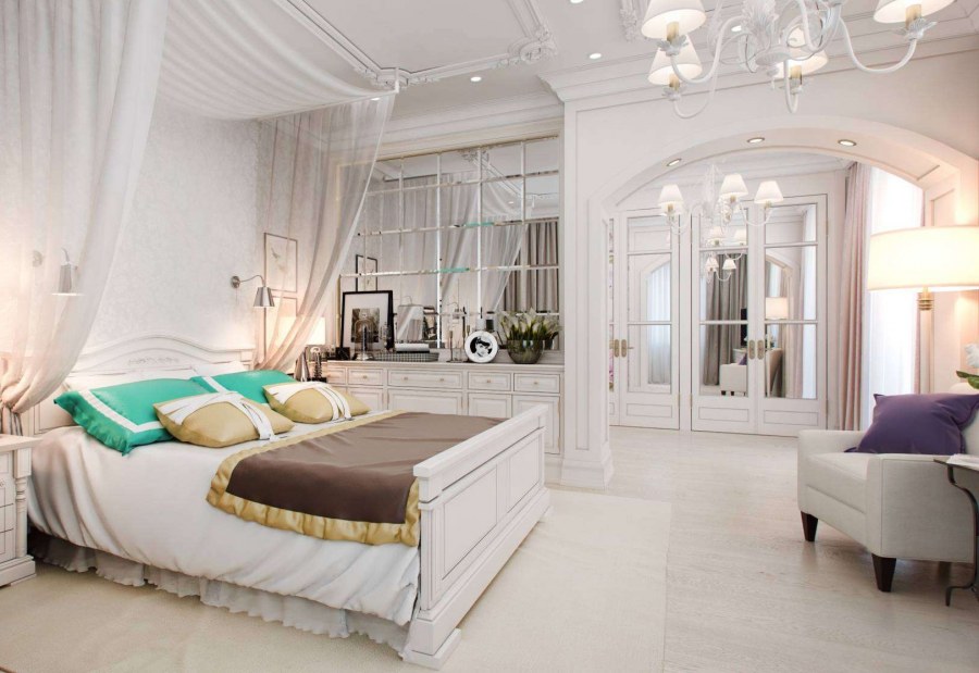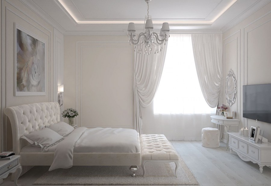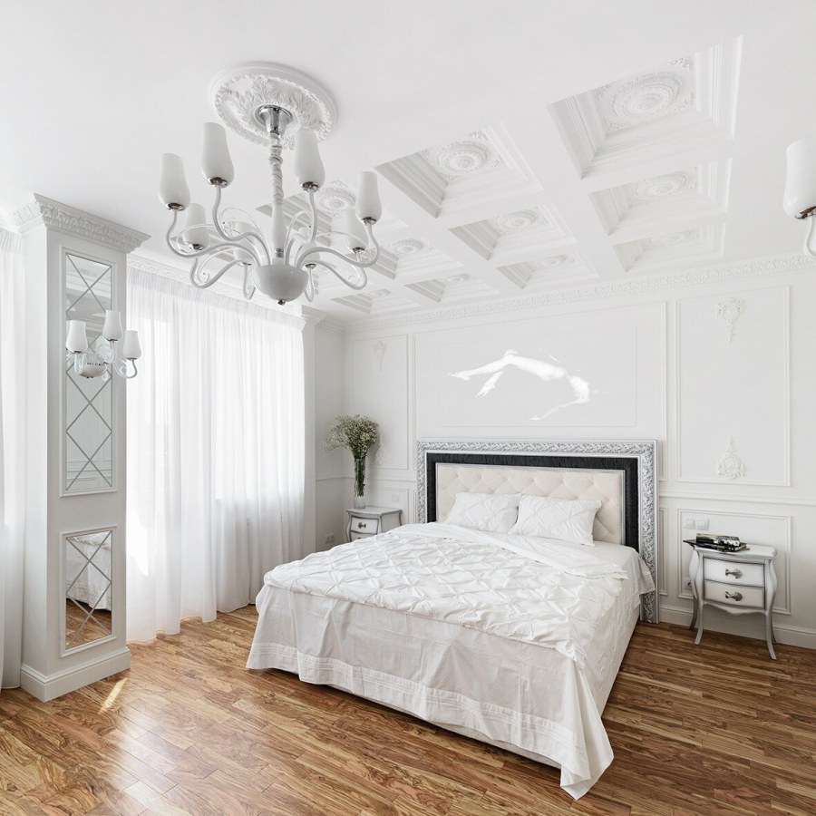 Белоснежные спальни в классическом стиле