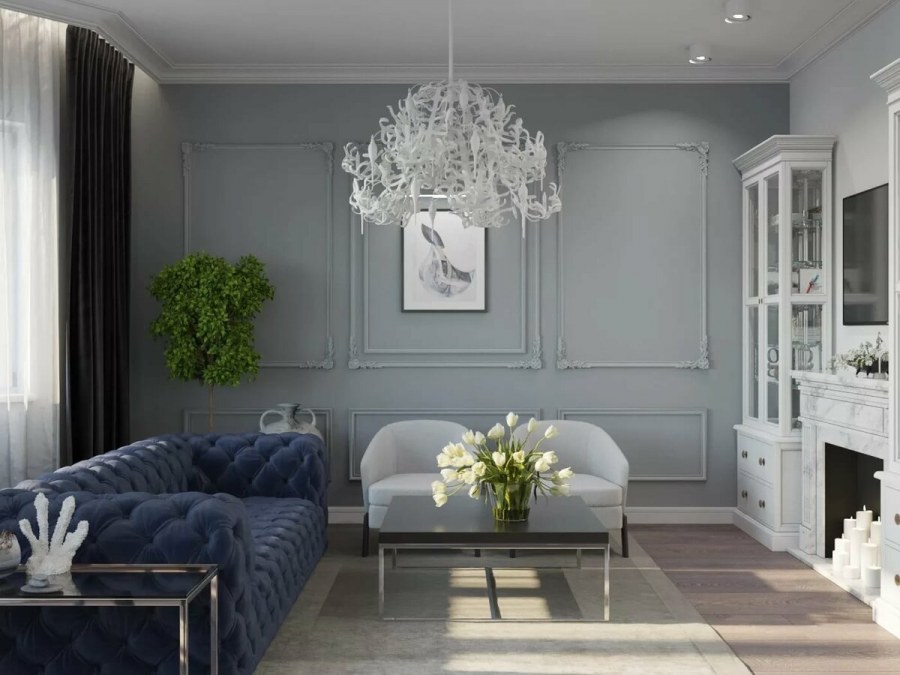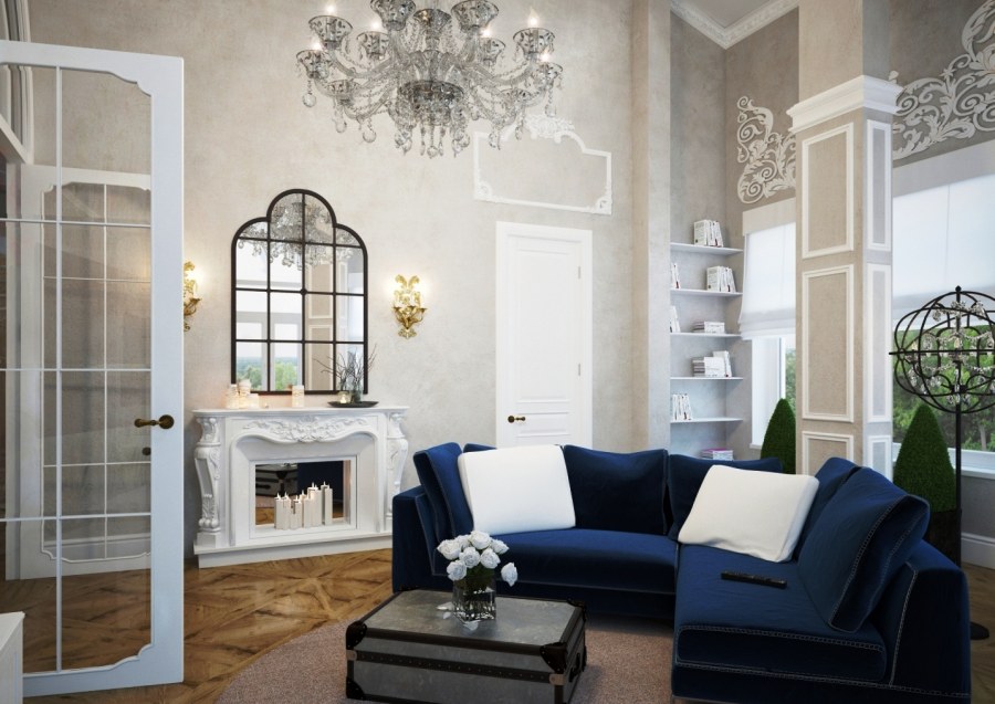 Голубой в интерьере гостиной классика