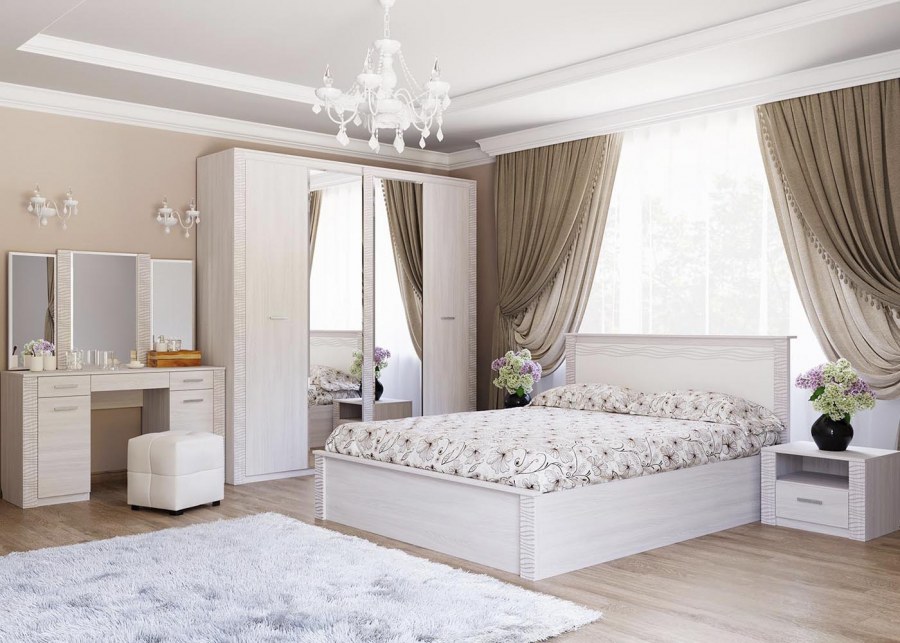 Спальный гарнитур в современном стиле в светлых тонах (70 фото)