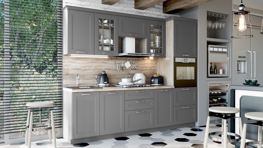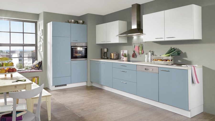 Кухня из МДФ Крашеного «Орион» NCS s3005-g50y матовый/RAL 9003