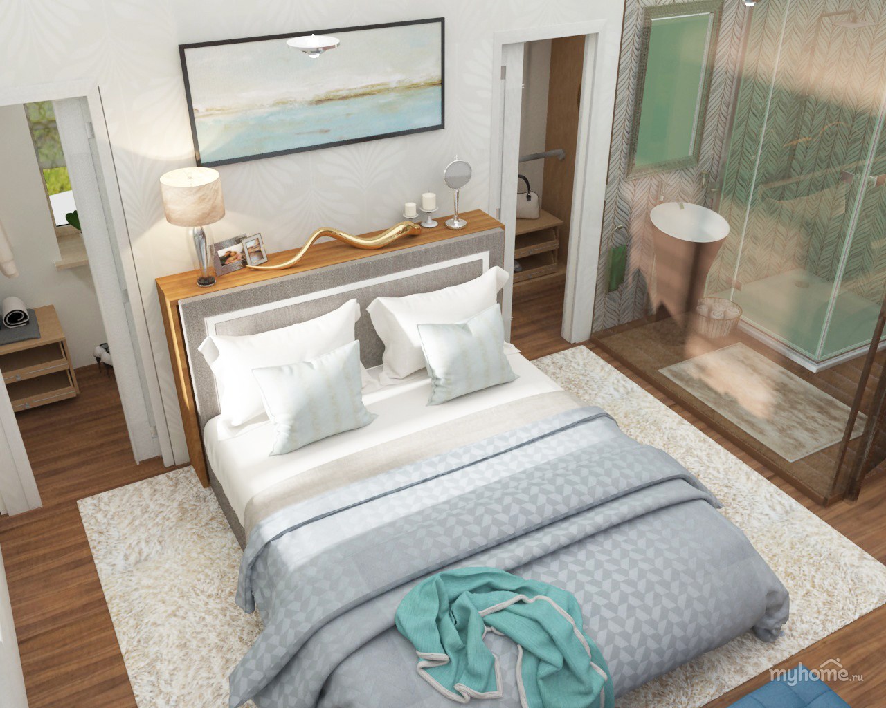 Спальня с санузлом и гардеробной (71 фото)