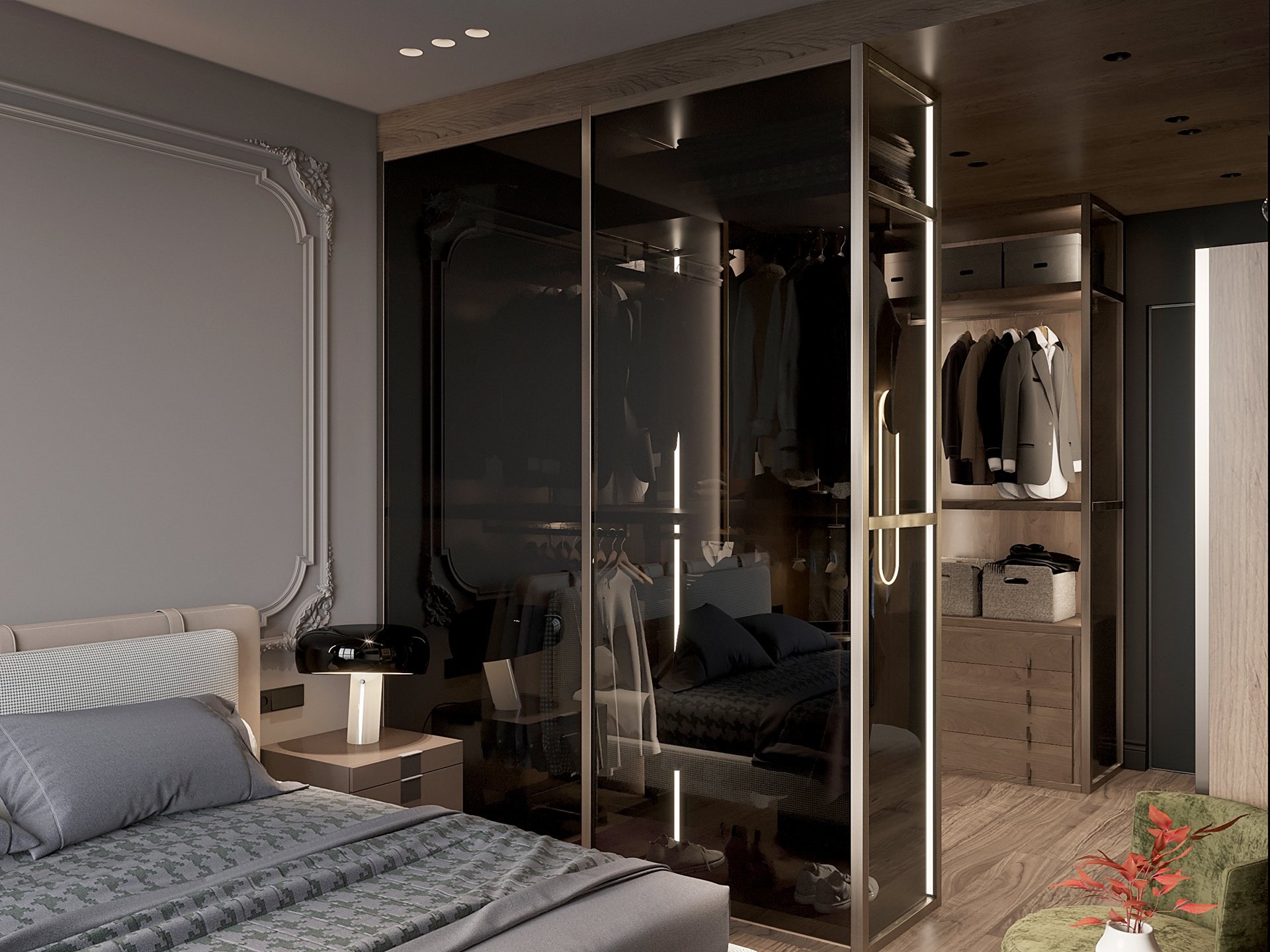 Гардеробная со стеклянной перегородкой