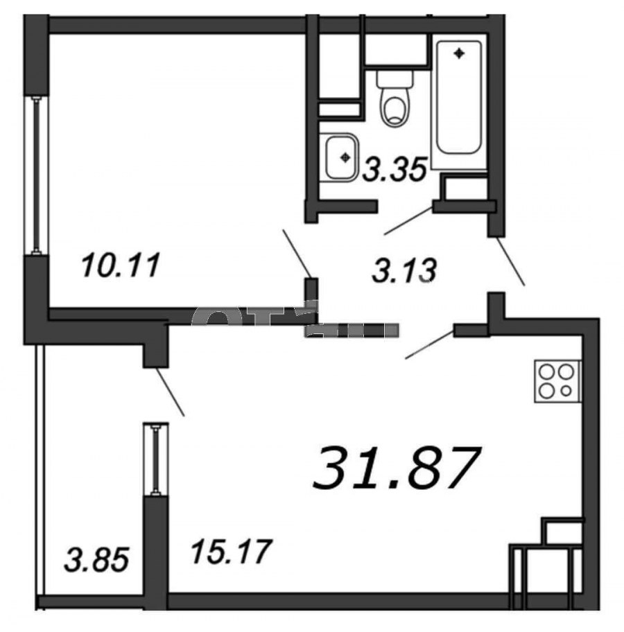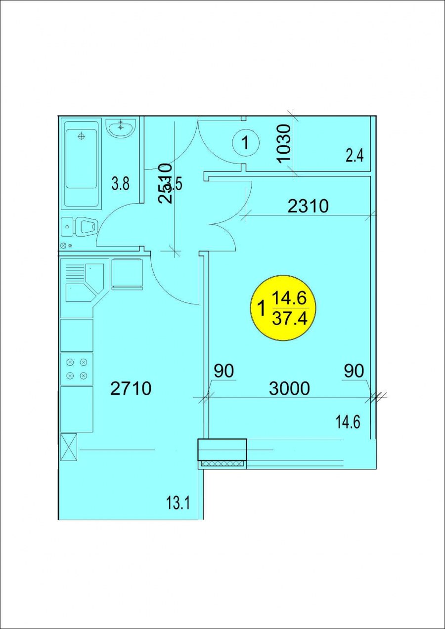 Флагман однокомнатная 37 м