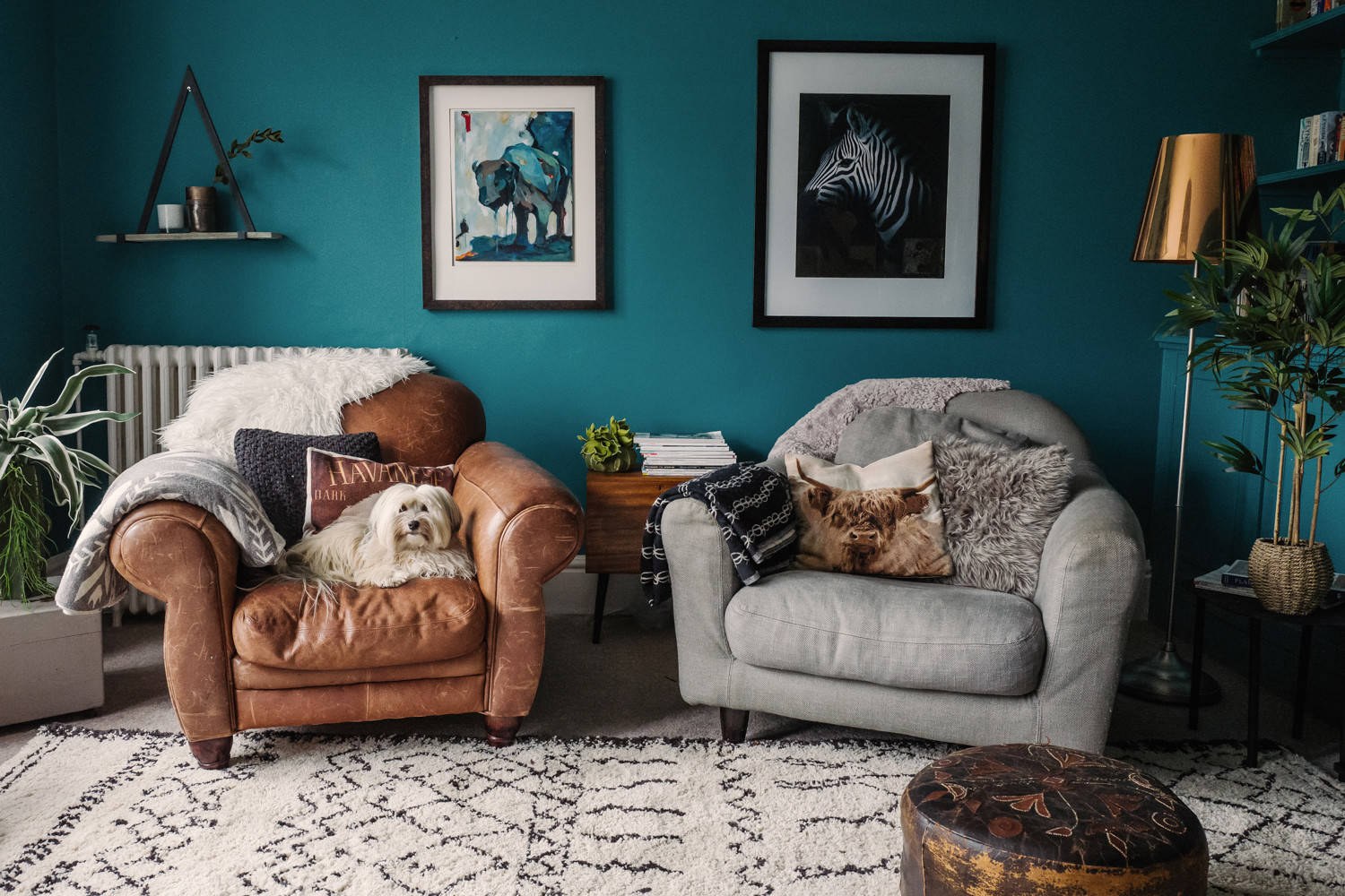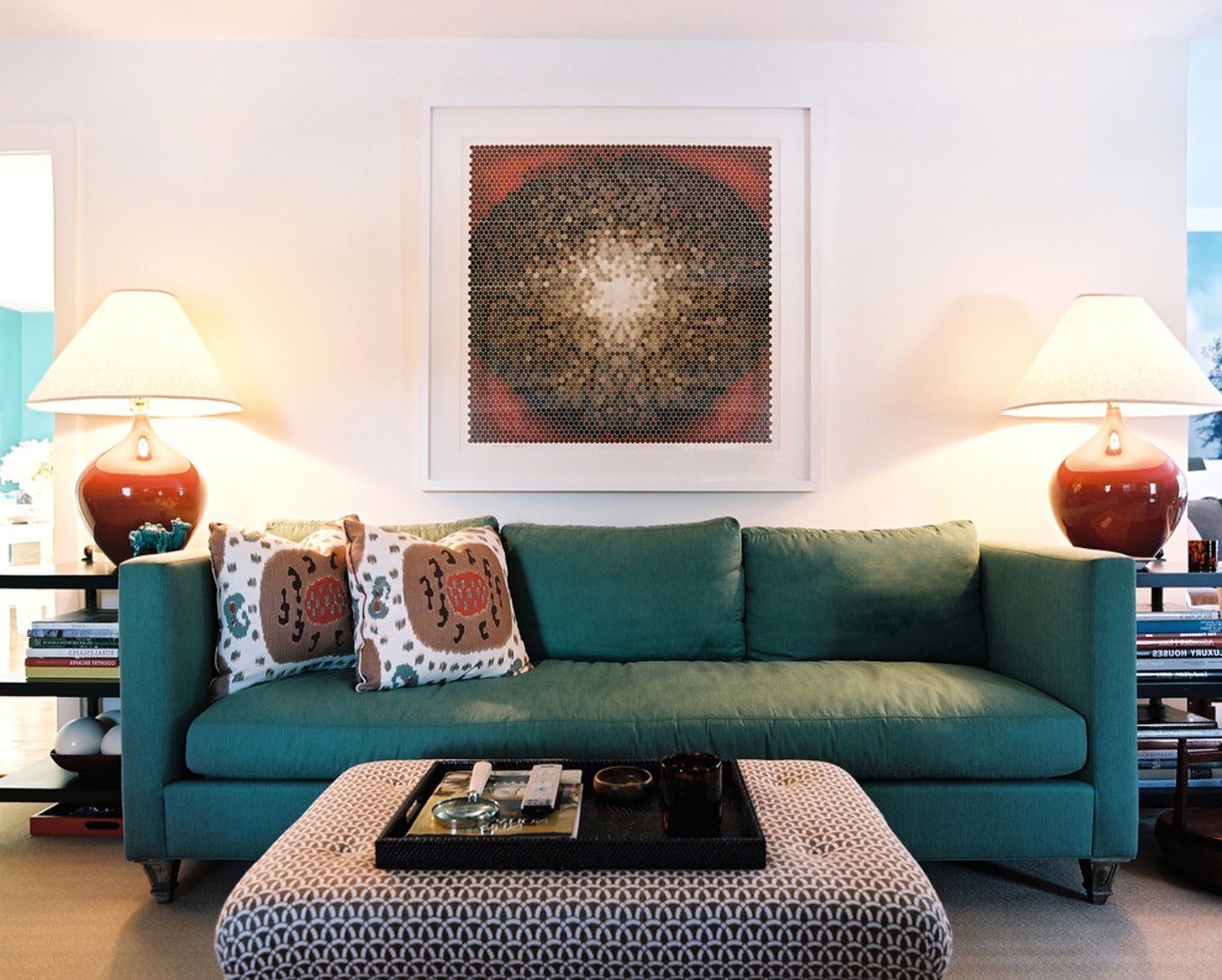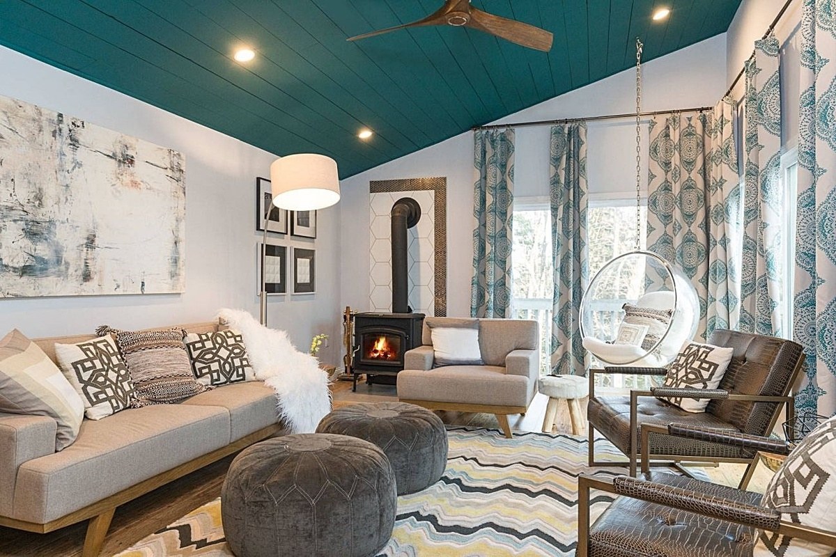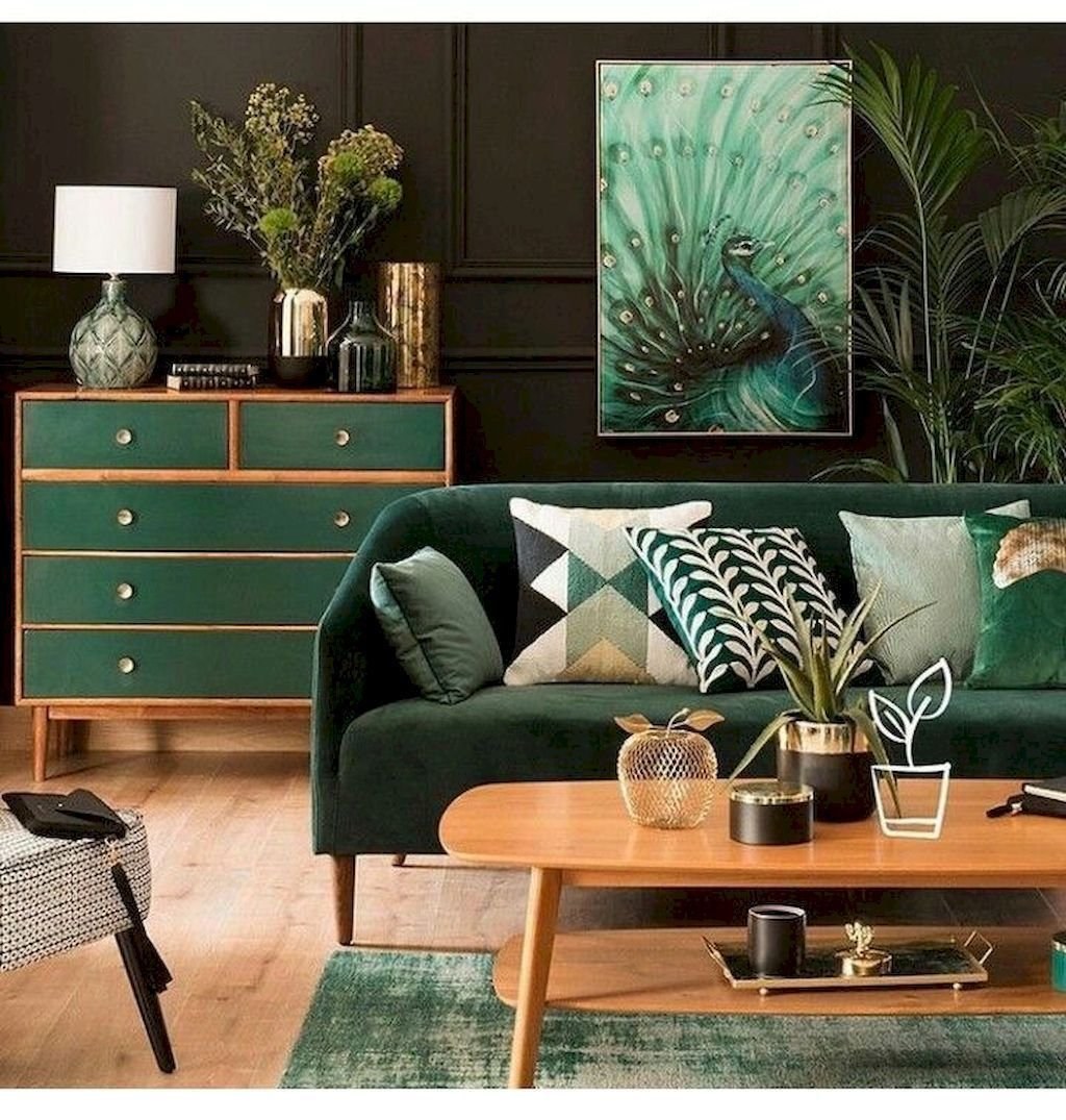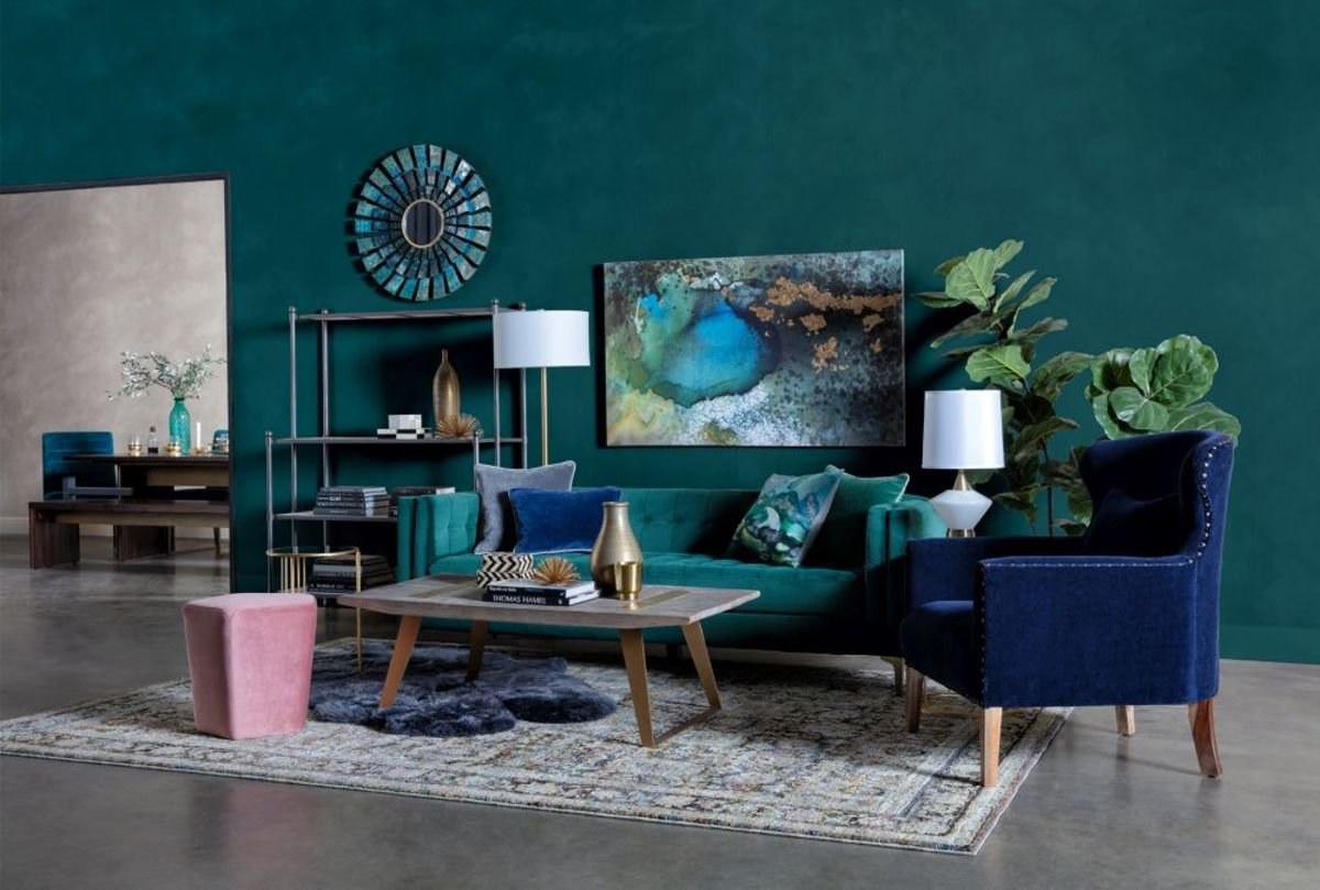Комната с бирюзовым диваном