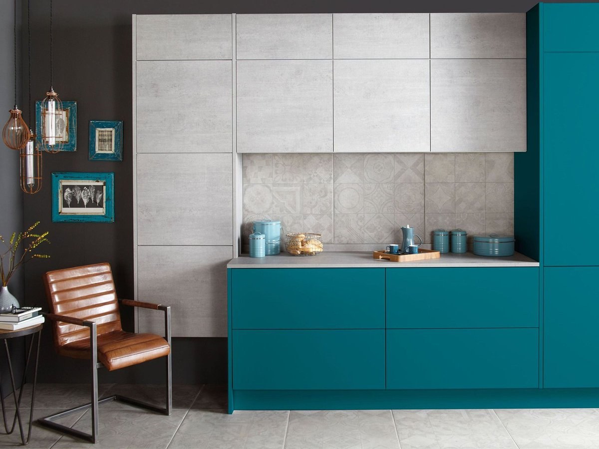 Кухни бетон с бирюзой