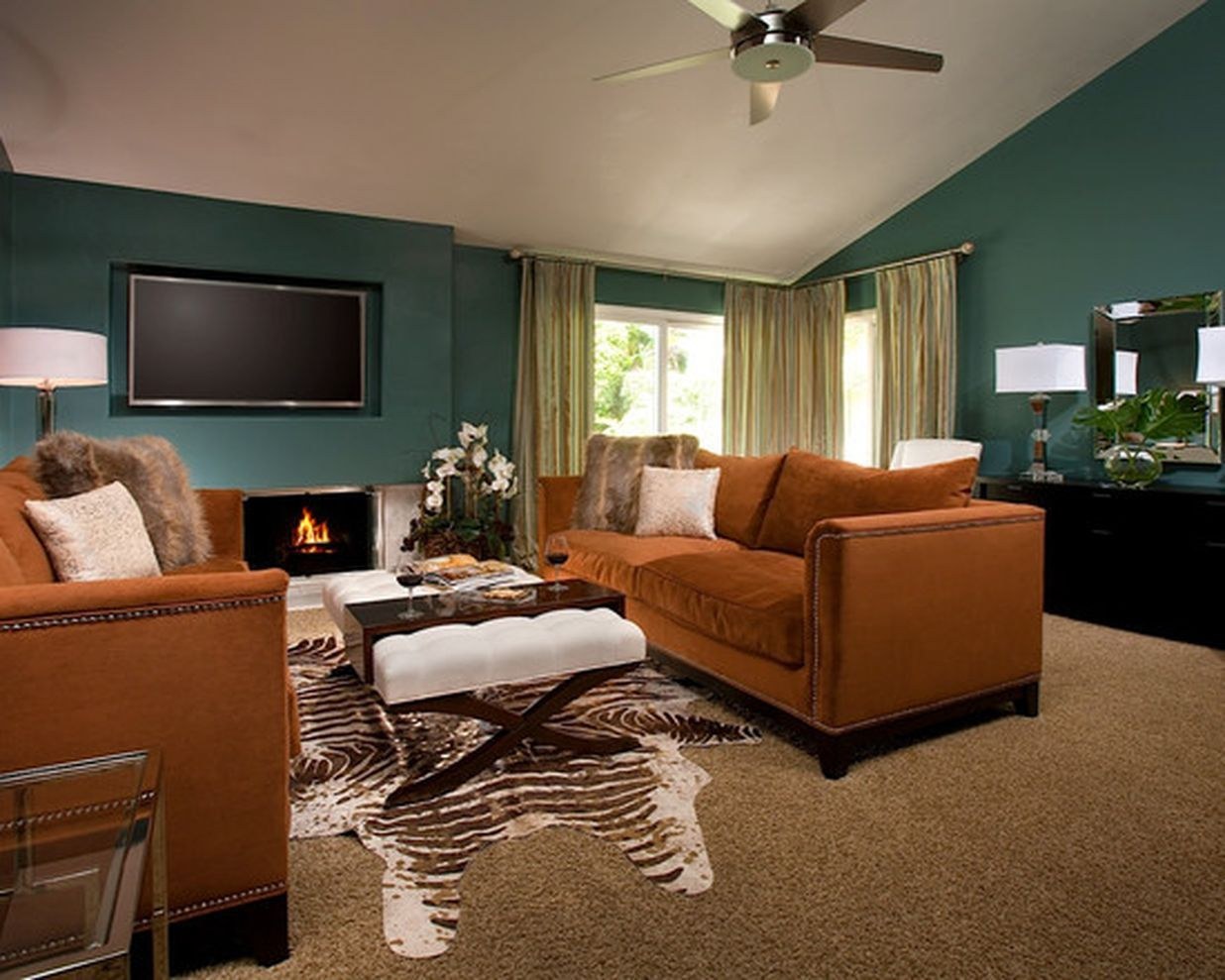 Оранжевый и бирюзовый в интерьере