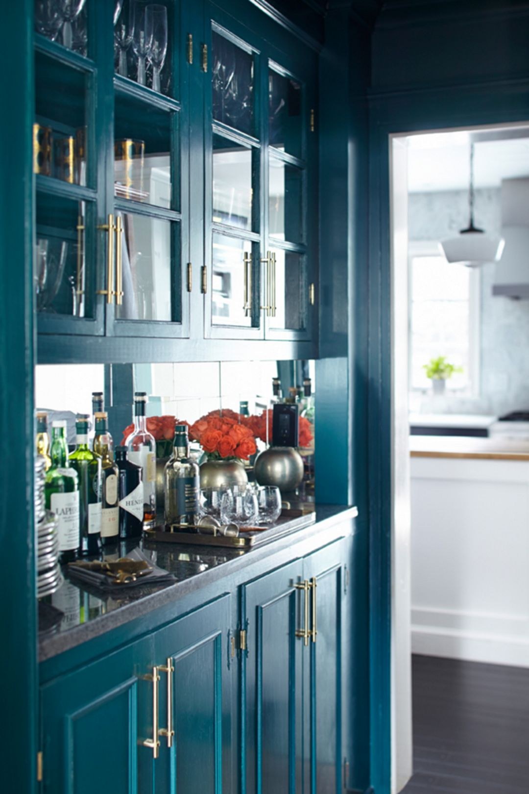 Синий буфет в интерьере кухни