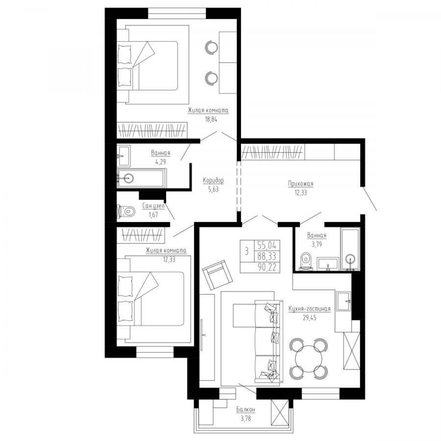 Дизайн проект однокомнатной квартиры 40 квадратных метров