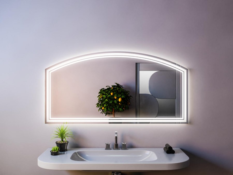 Зеркало с подсветкой и полками в интерьере (70 фото)