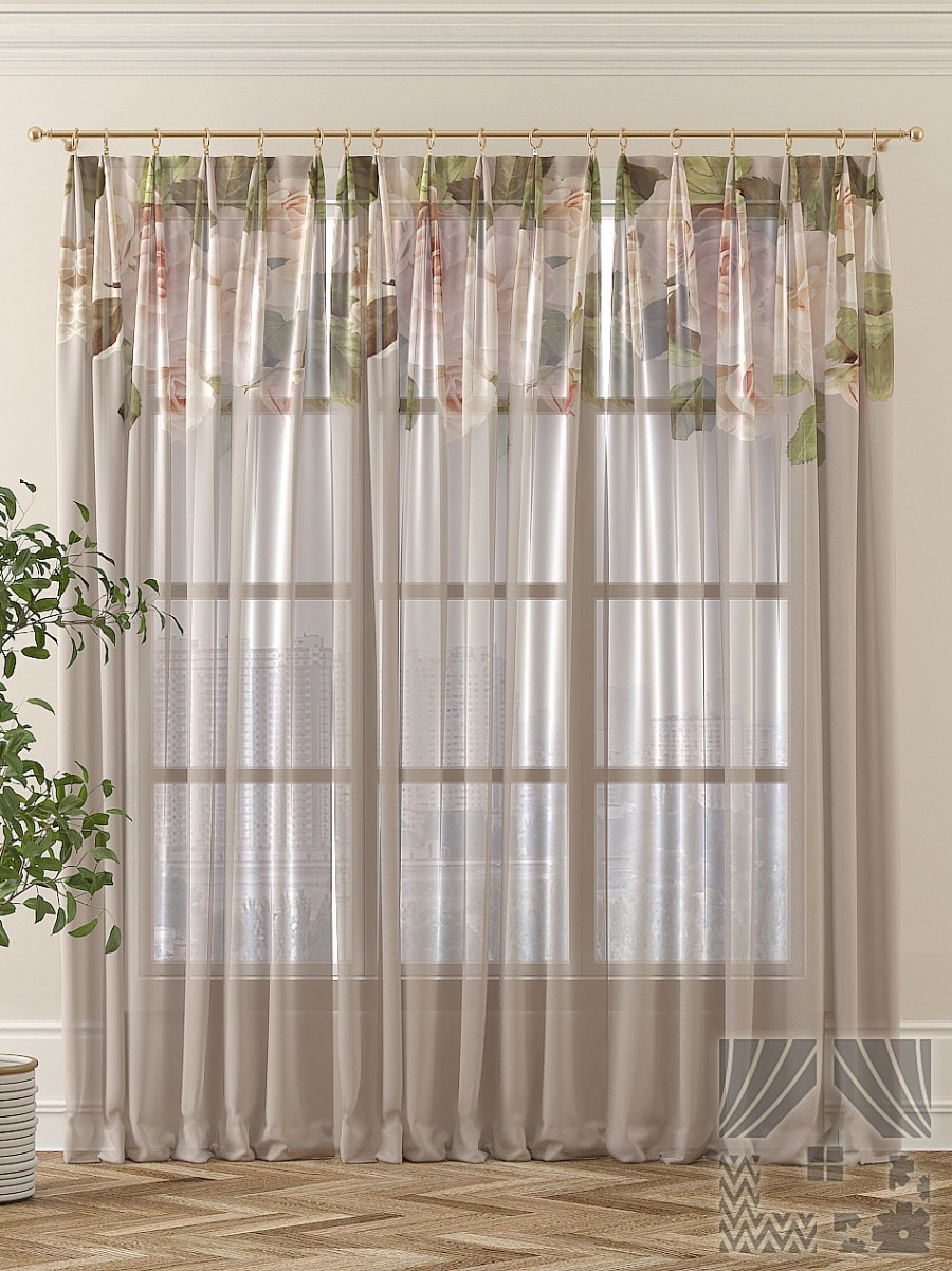 Штора тюль лен Деворе листья jyb005 500х275 см, молочный, ПЭ