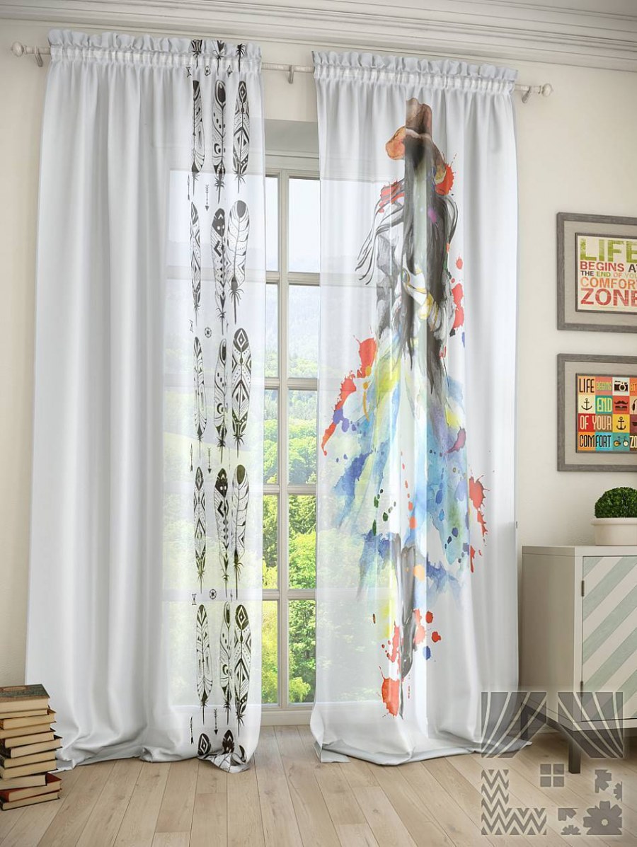 Портьера ТОМДОМ флайро 280х150см, разноцветный, оранжевый