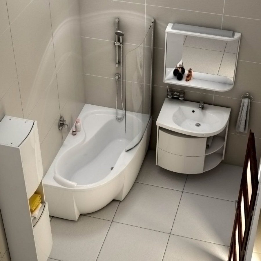 Совмещенный санузел с душевой со шторкой в интерьере (69 фото)