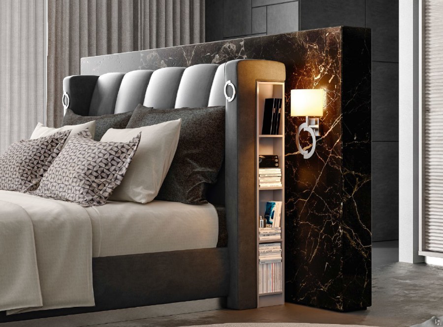 Кровать Caroti с мягкими изголовьем и книжными полками