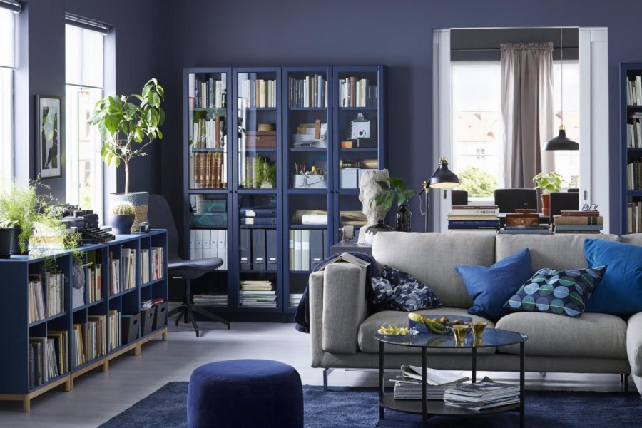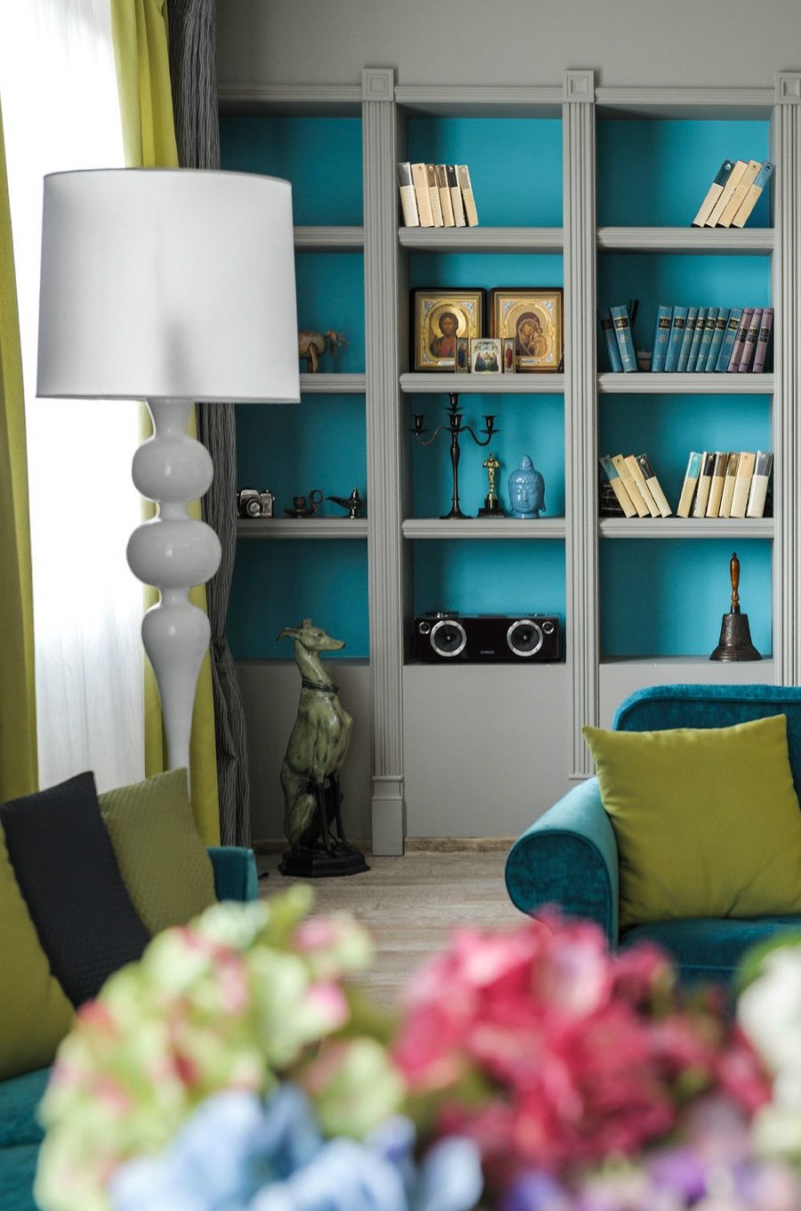 Стеллаж билли серо бирюзового цвета в интерьере (65 фото)