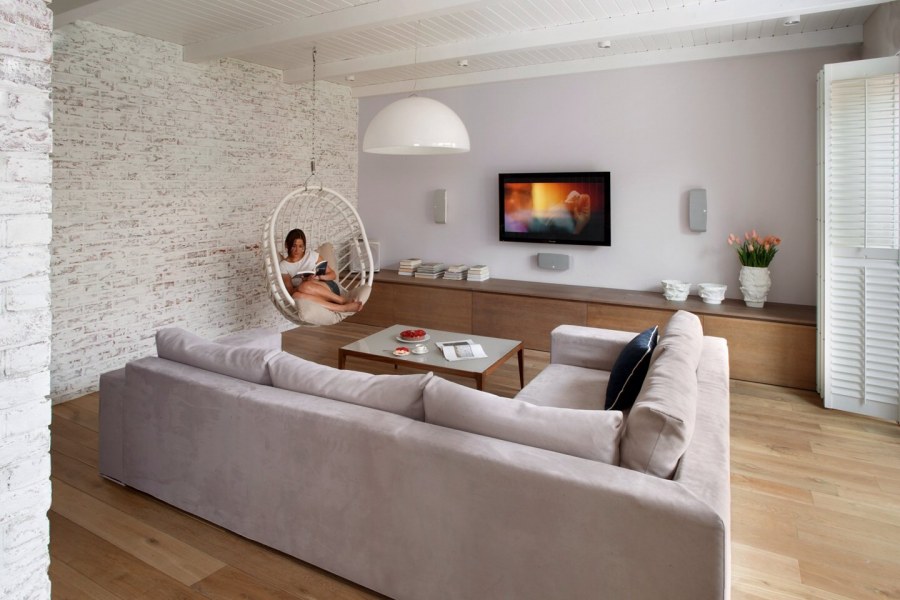 Гостиная с белым кирпичом