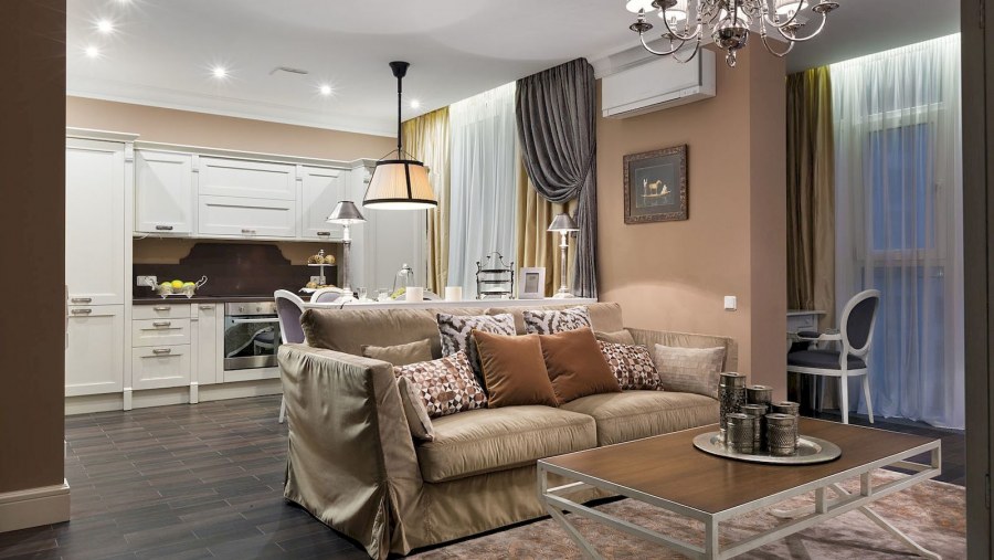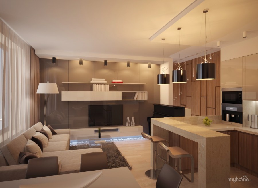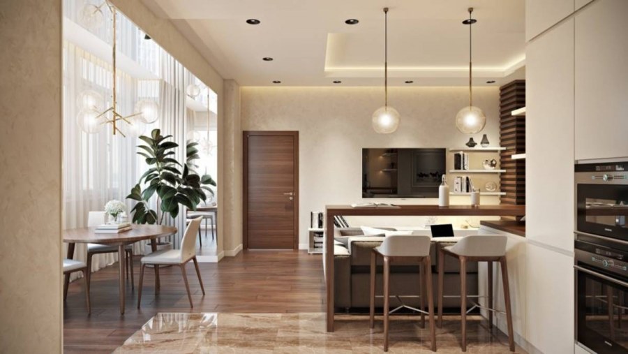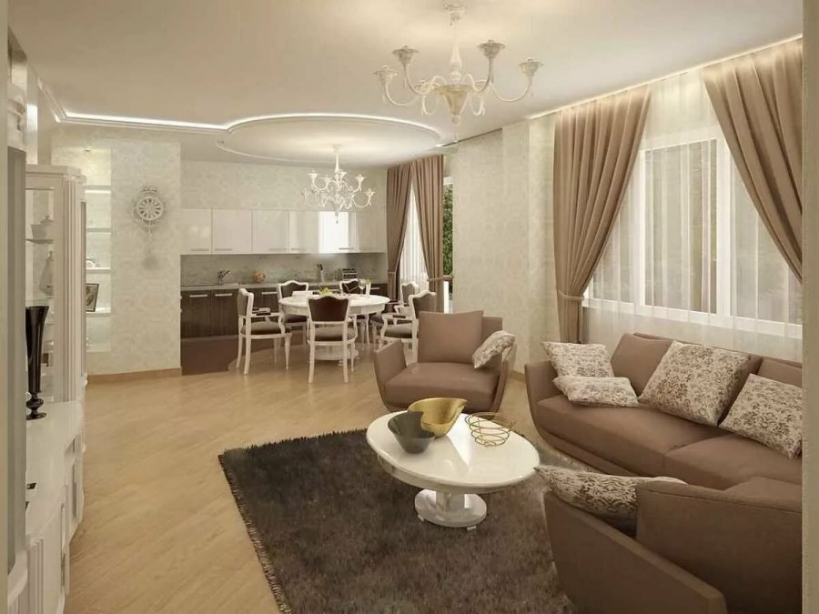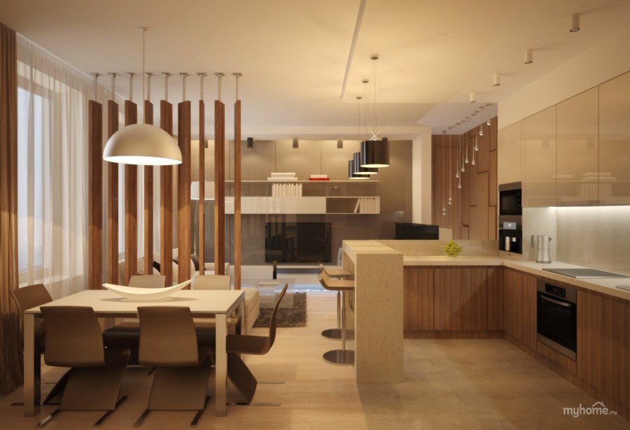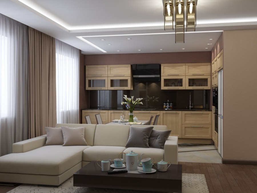 Кухня гостиная в теплых тонах (72 фото)