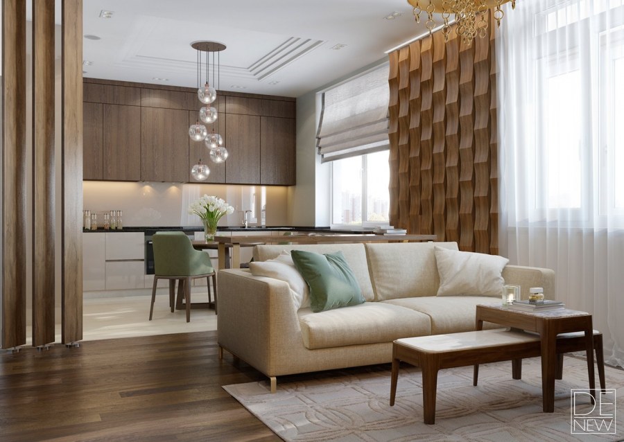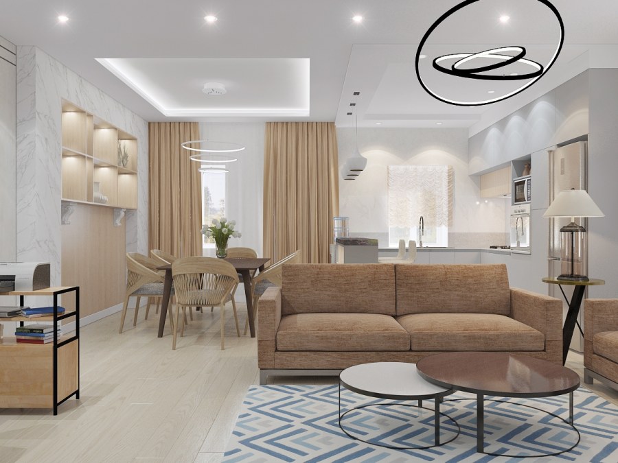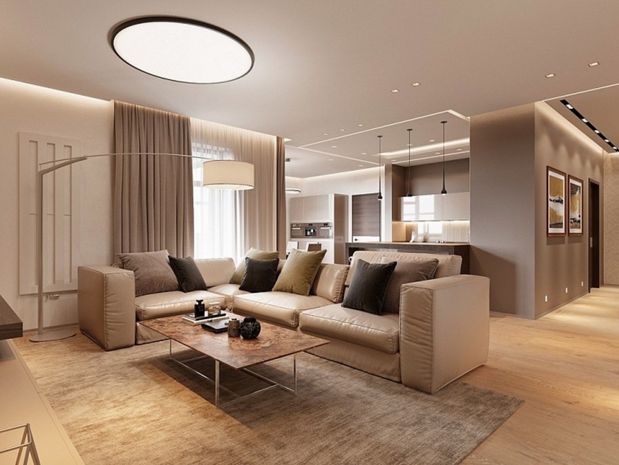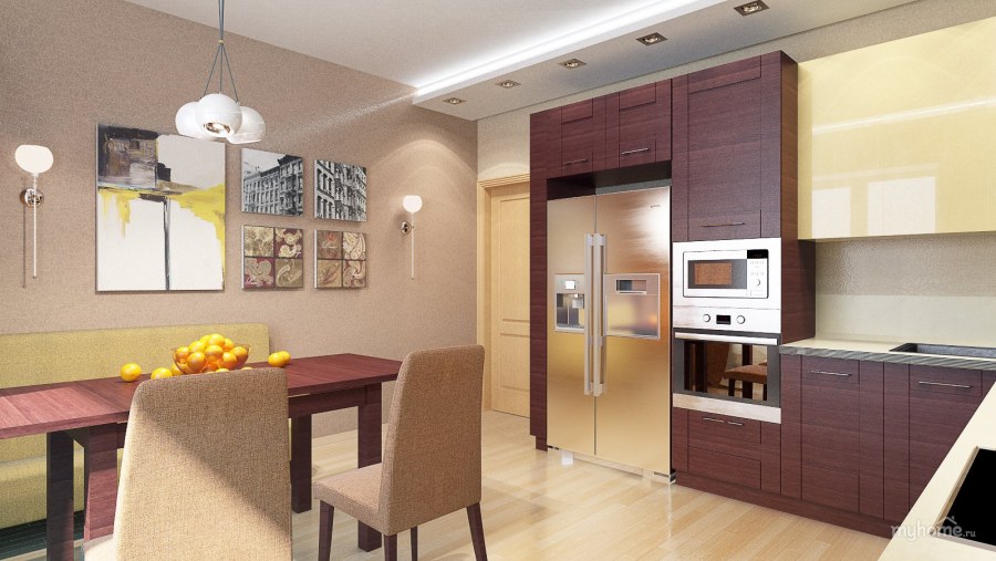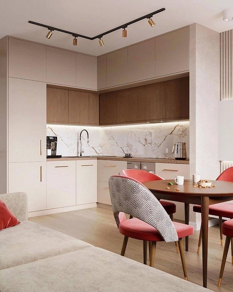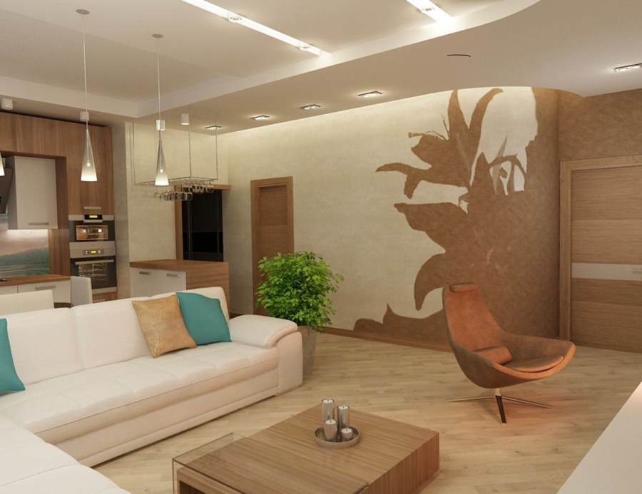 Кухня гостиная в теплых тонах (72 фото)