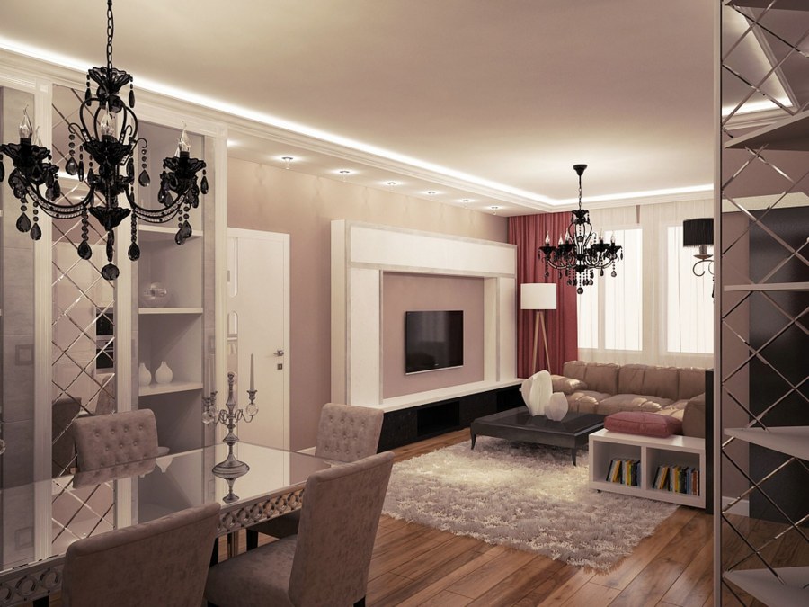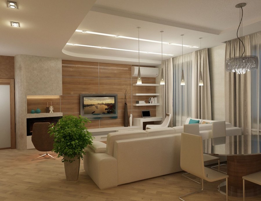 Освещение гостиной совмещенной с кухней