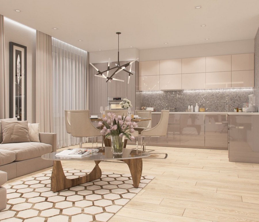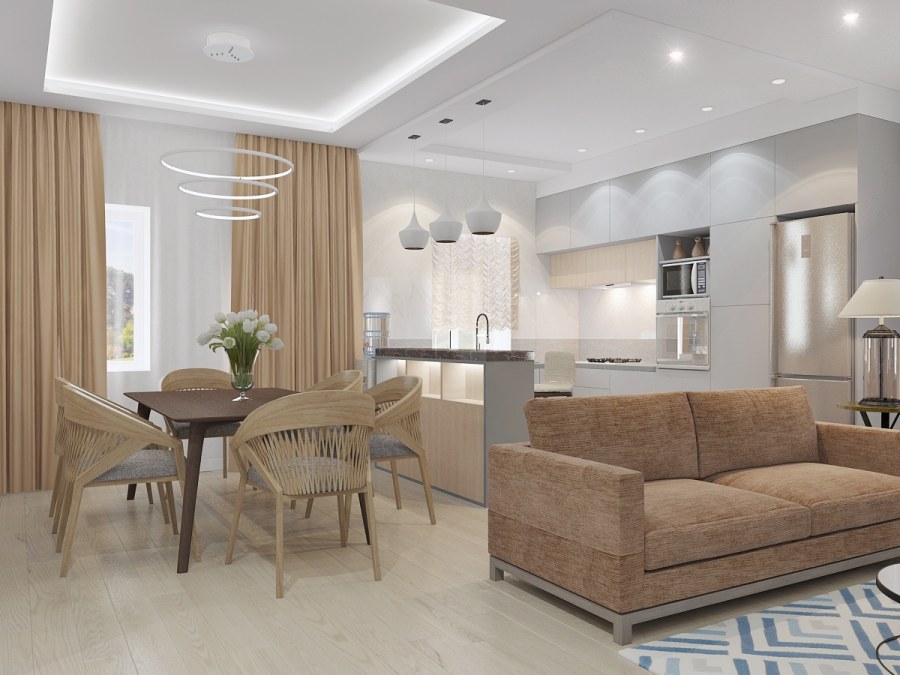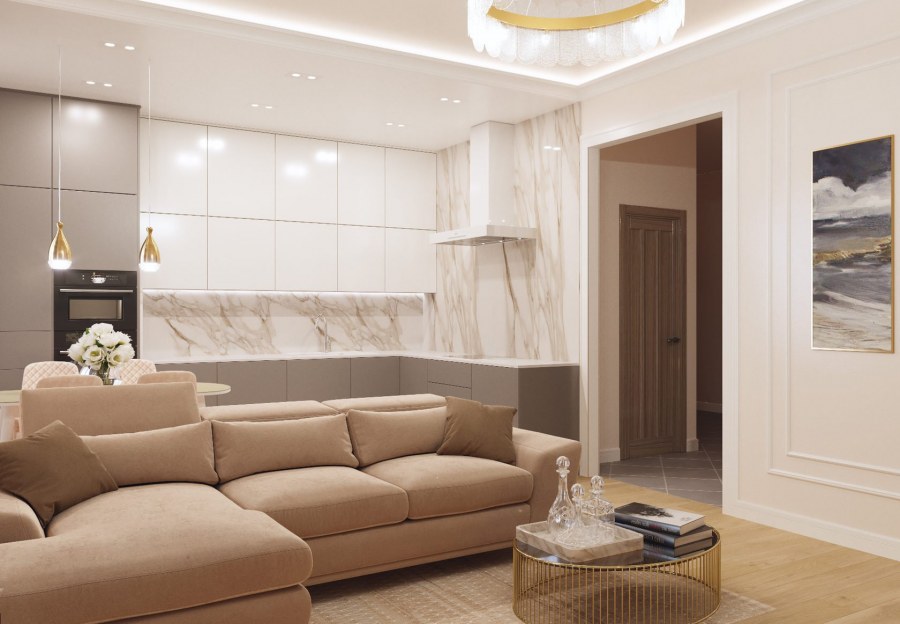 Кухня гостиная в бежевых тонах