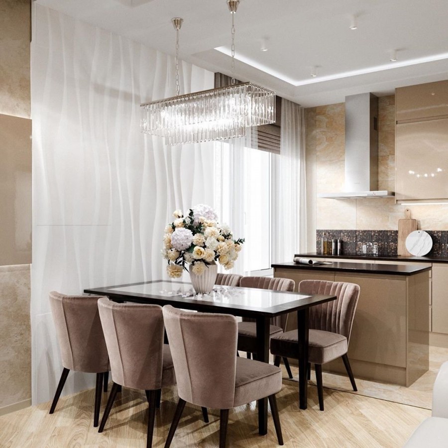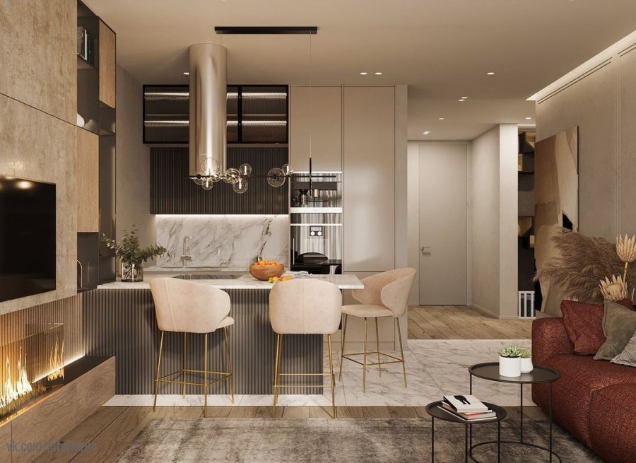 Стильный интерьер кухни гостиной