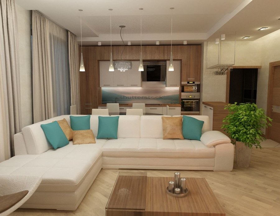 Кухня гостиная с угловым диваном