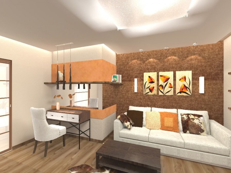 Кухнягостинная в теплых тонах