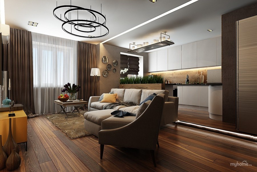 Зонирование кухни-гостиной 30 кв.м