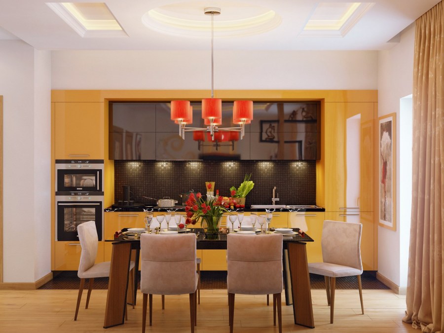 Яркая кухня гостиная