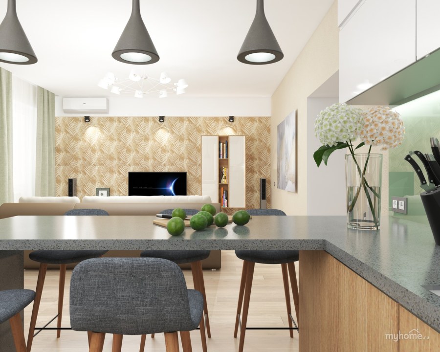 Кухня гостиная дизайнерский проект