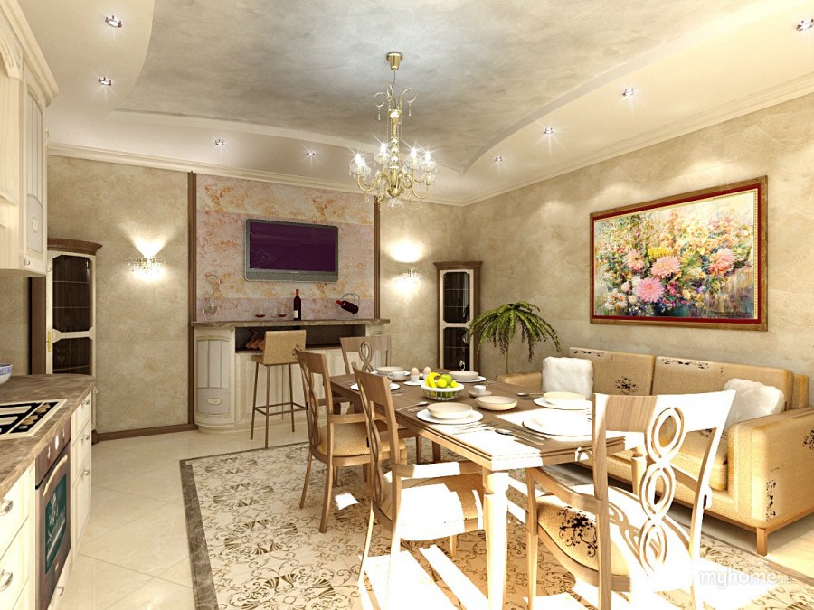 Кухня гостиная 30 кв м Неоклассика