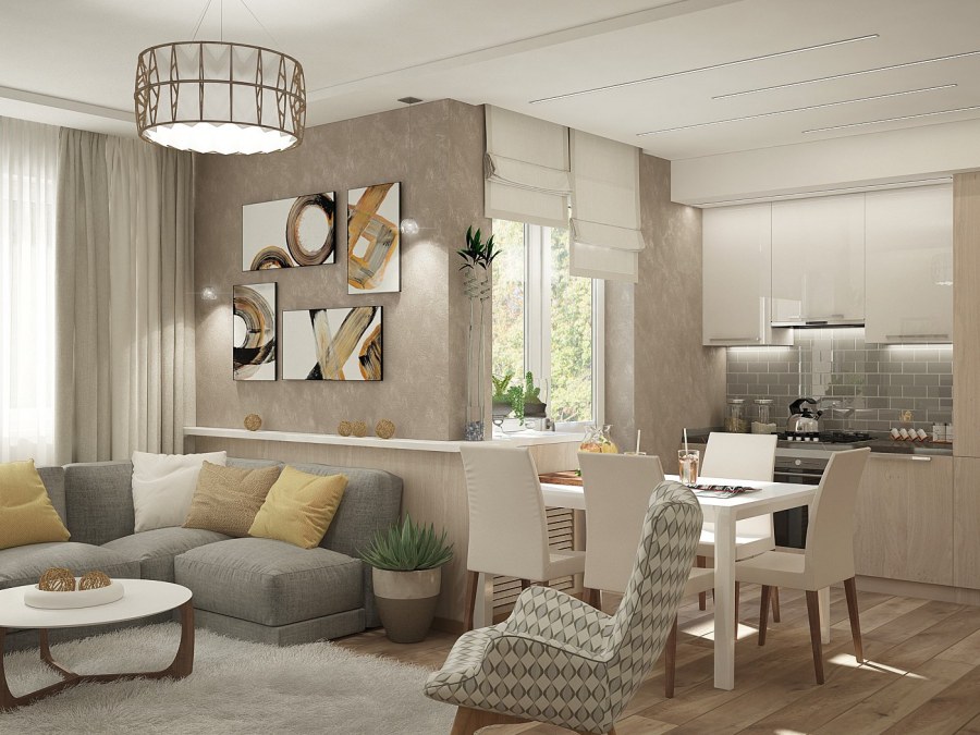 Коллаж кухня гостиная в современном стиле