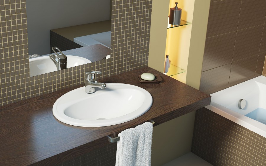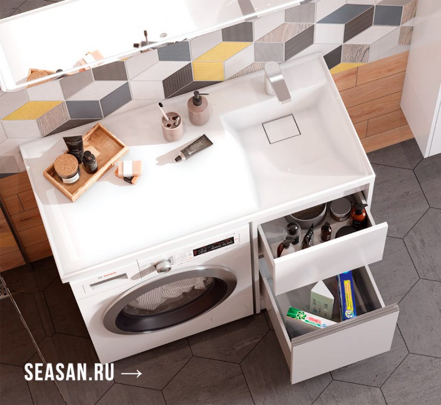 Шкаф под раковину со столешницей в интерьере (68 фото)